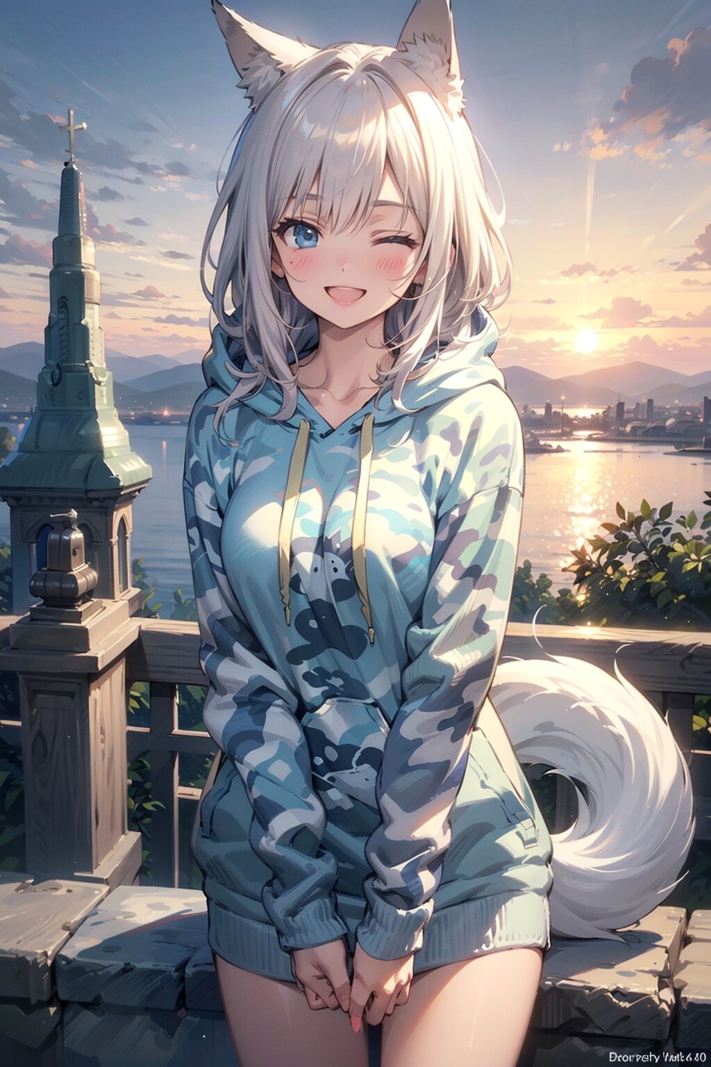 パーカーの裾を引っ張るカモフラウルフちゃん🐺💦