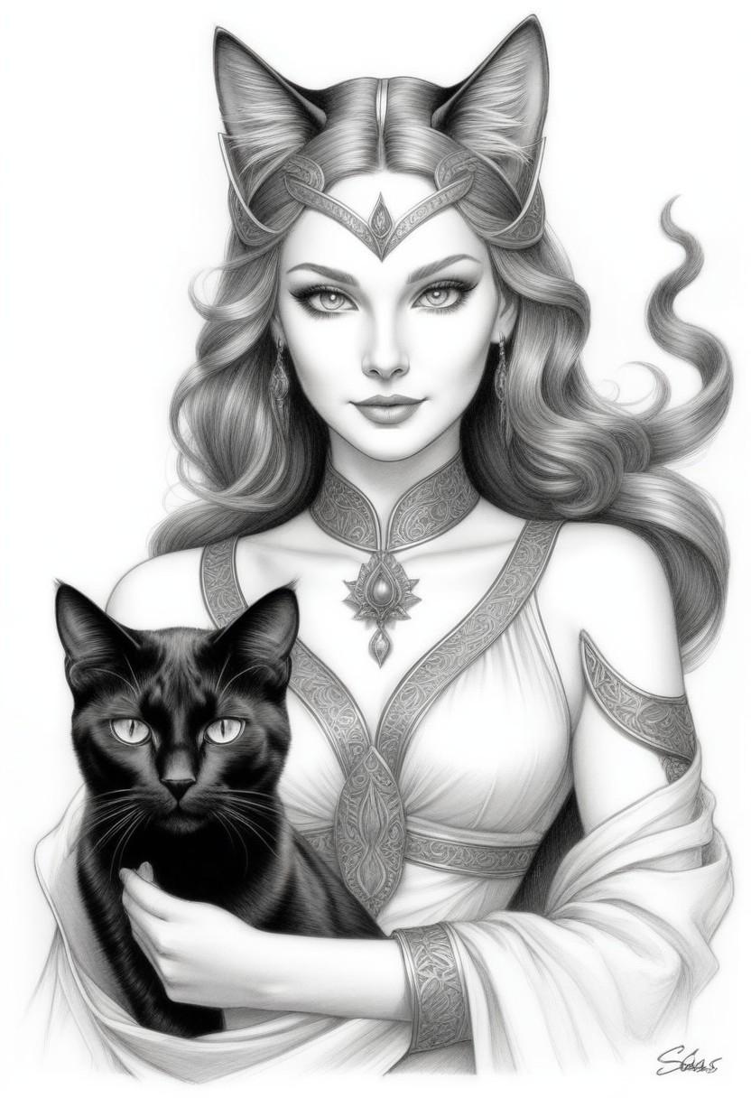 Lady of cats, protector of housecats, patron goddess of agility, grace, stealth and thievery, Sebas is worshipped by cat lovers, thieves, acrobats, and by the Catfolk. Sebas appears as a graceful woman with a cat's ears and eyes, or as a graceful, black housecat. Since she protects cats who are kept as mousers, there is great enmity between Sebas and Radah the Rodent God.