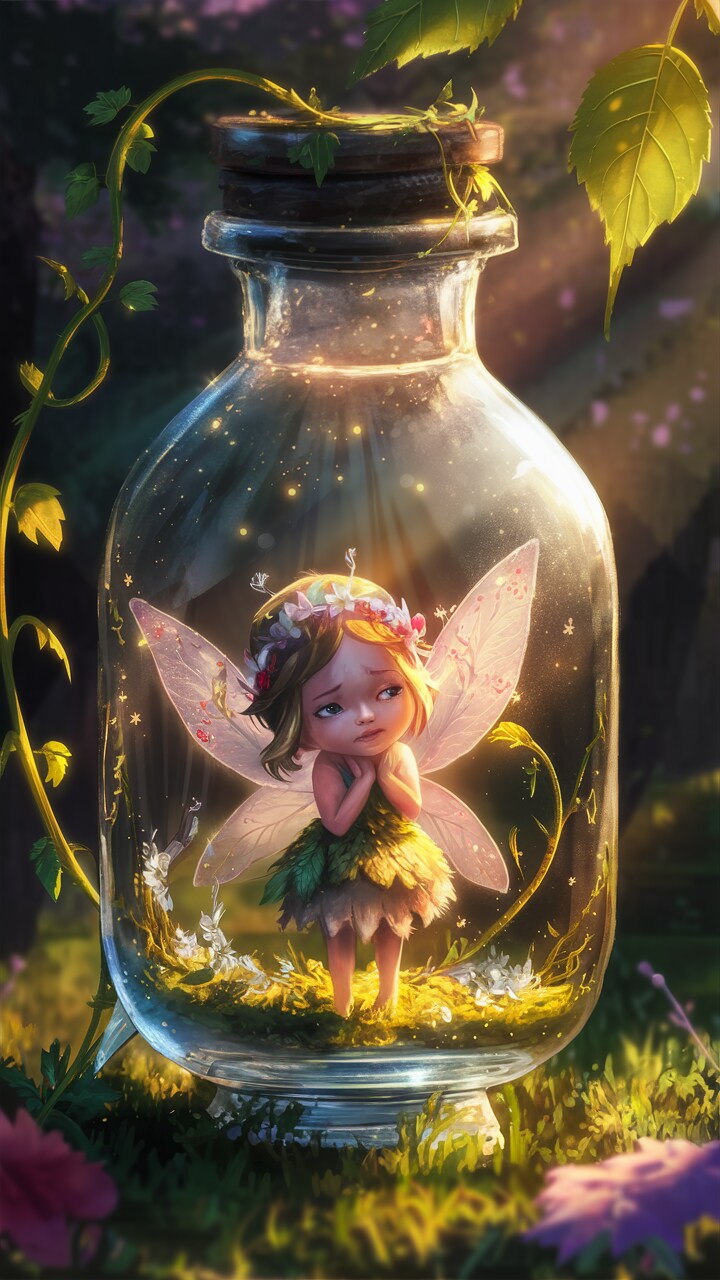 オリジナルプロンプトは「a fairy girl trapped in a transparent bottle」