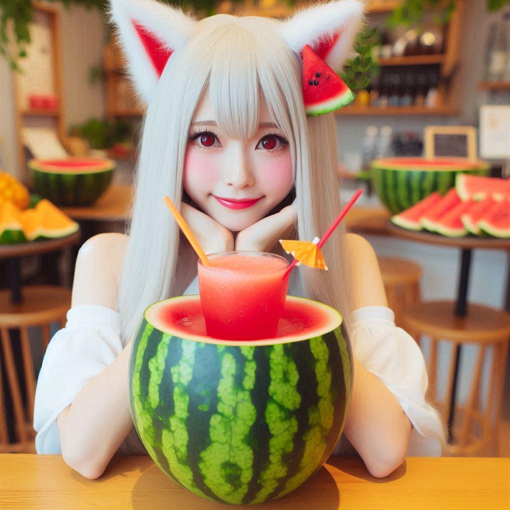 もちろん、噂のスイカ🍉ジュース🥤を頼んだよ😄