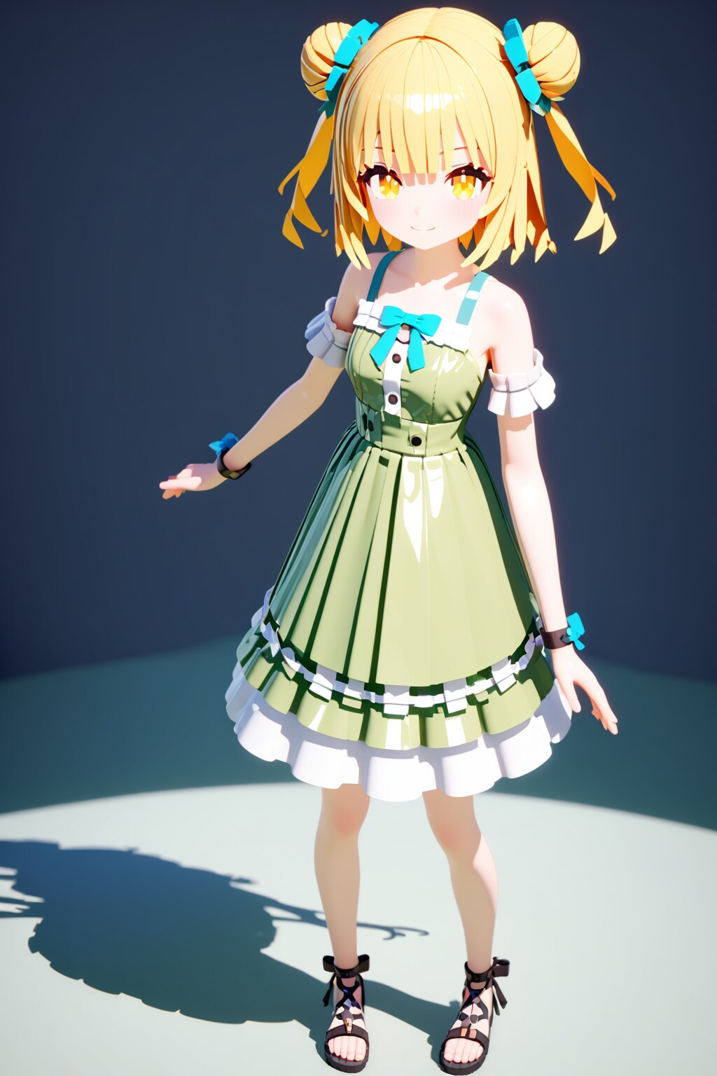 ② 1girl, bob cut ((two side up, double bun)), bow hair, ((light blonde hair)), gold eyes, big eyes:1.4, smile,