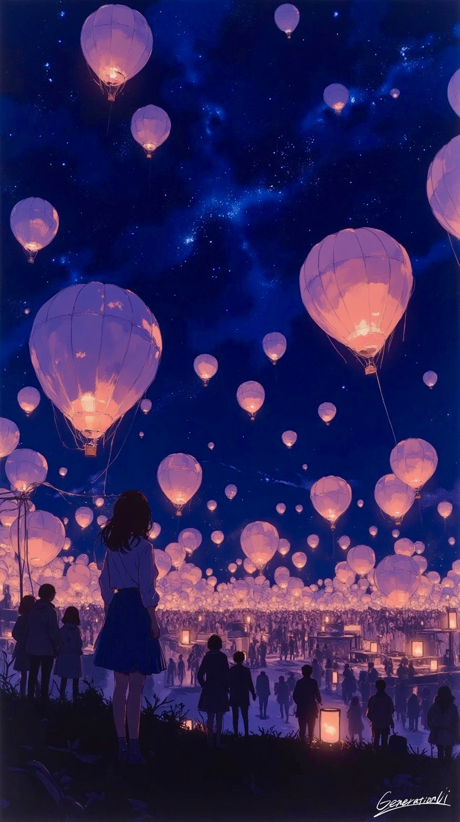 風に乗ってゆっくりと浮かぶ気球たちは、誰かの想いをそっと灯していた。