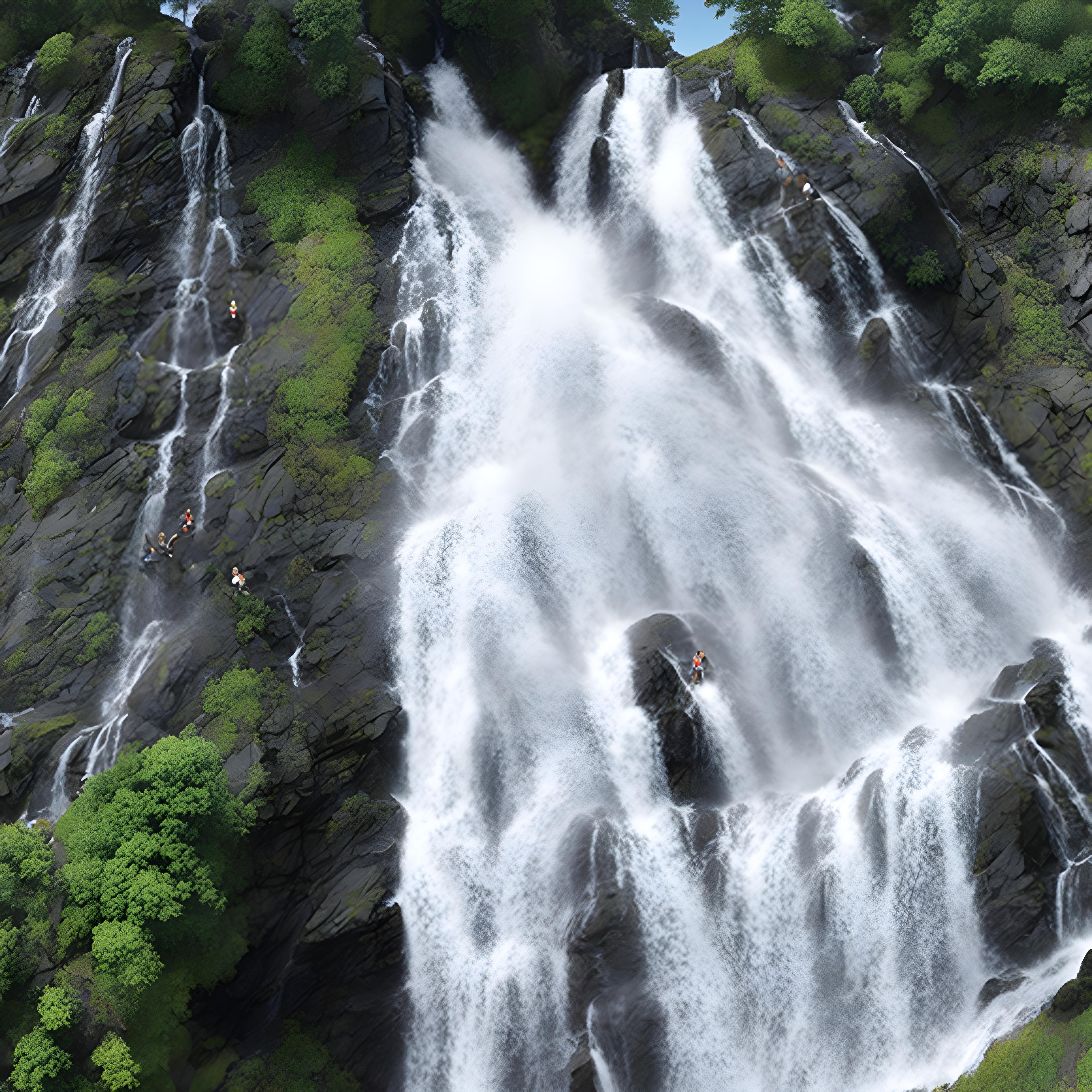 大きな滝を登っていくことなんてできないよー。
