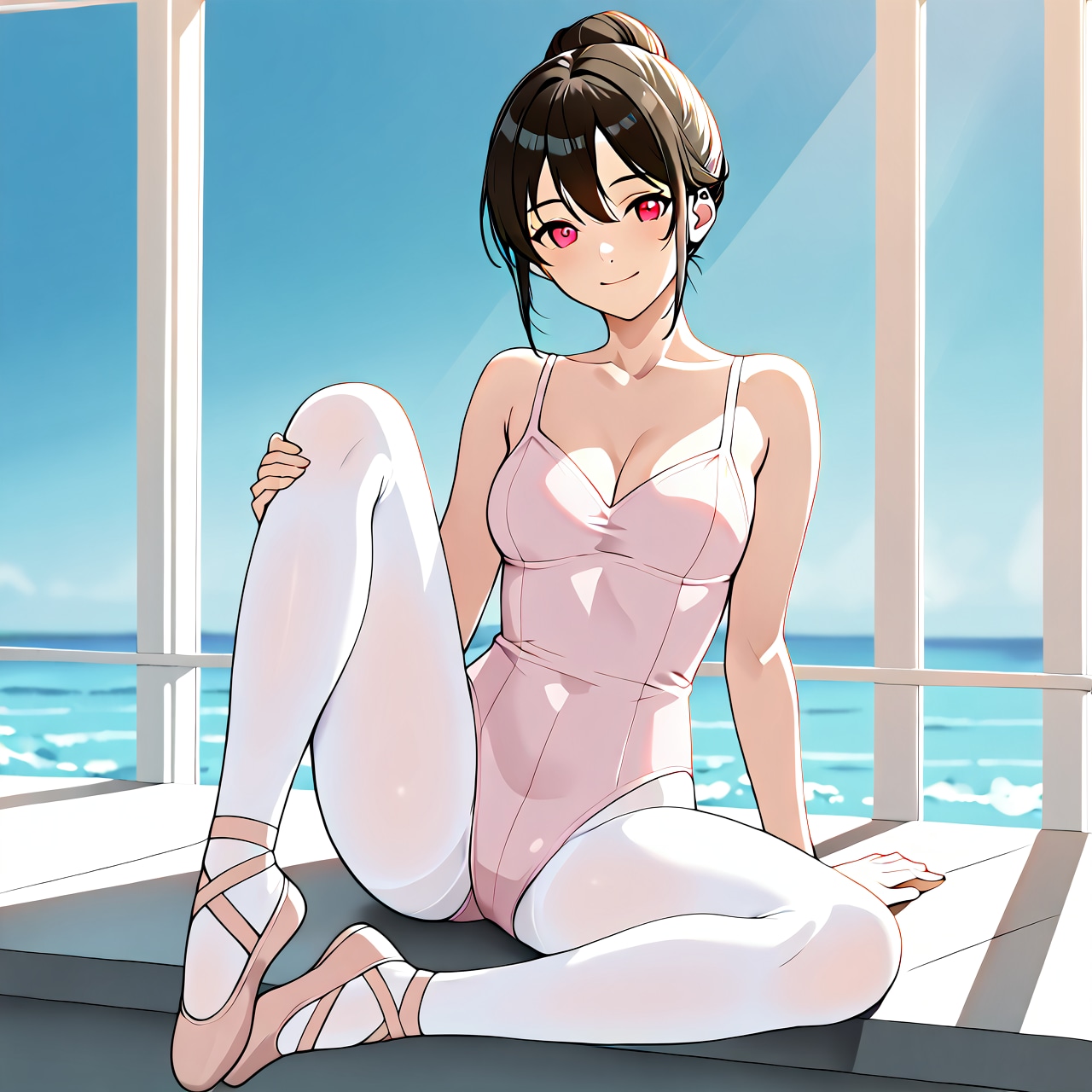 夏っぽいバレエ絵を出したくて、適当に背景を海にして