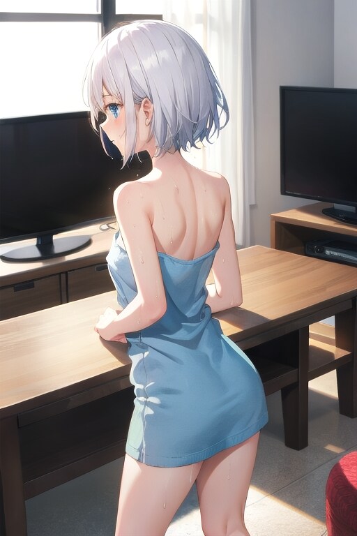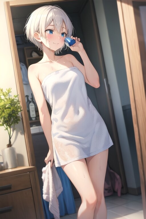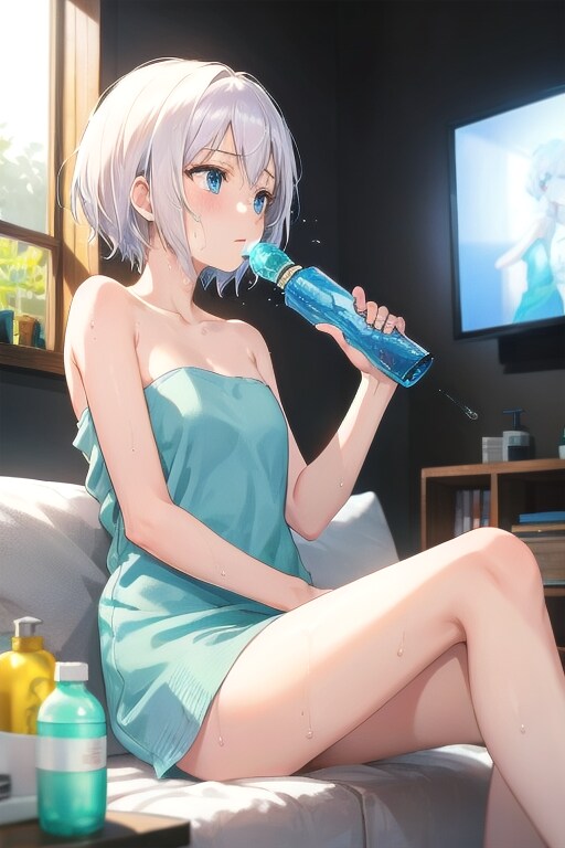 風呂から出た後、タオル一丁のまま水分補給しつつテレビを眺めてグデーッとして、いつまでもこの恰好じゃダメだよねと我に返る、そんな夏休みの一時。