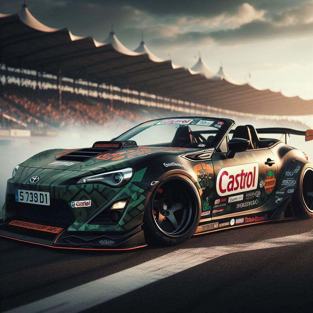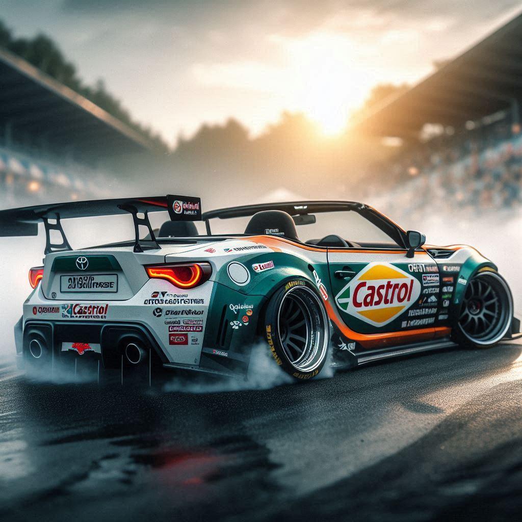 カストロールカラーのトヨタ86オープンカーのドリ車