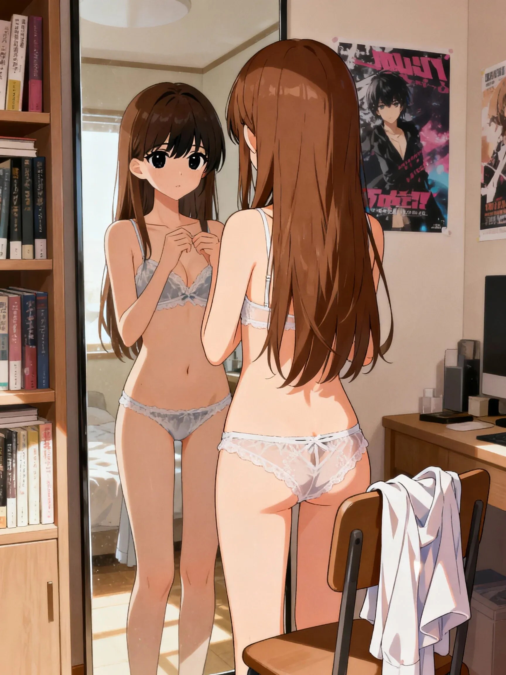 下着の試着するみことちゃんとキスをするさくらちゃんとステラちゃん