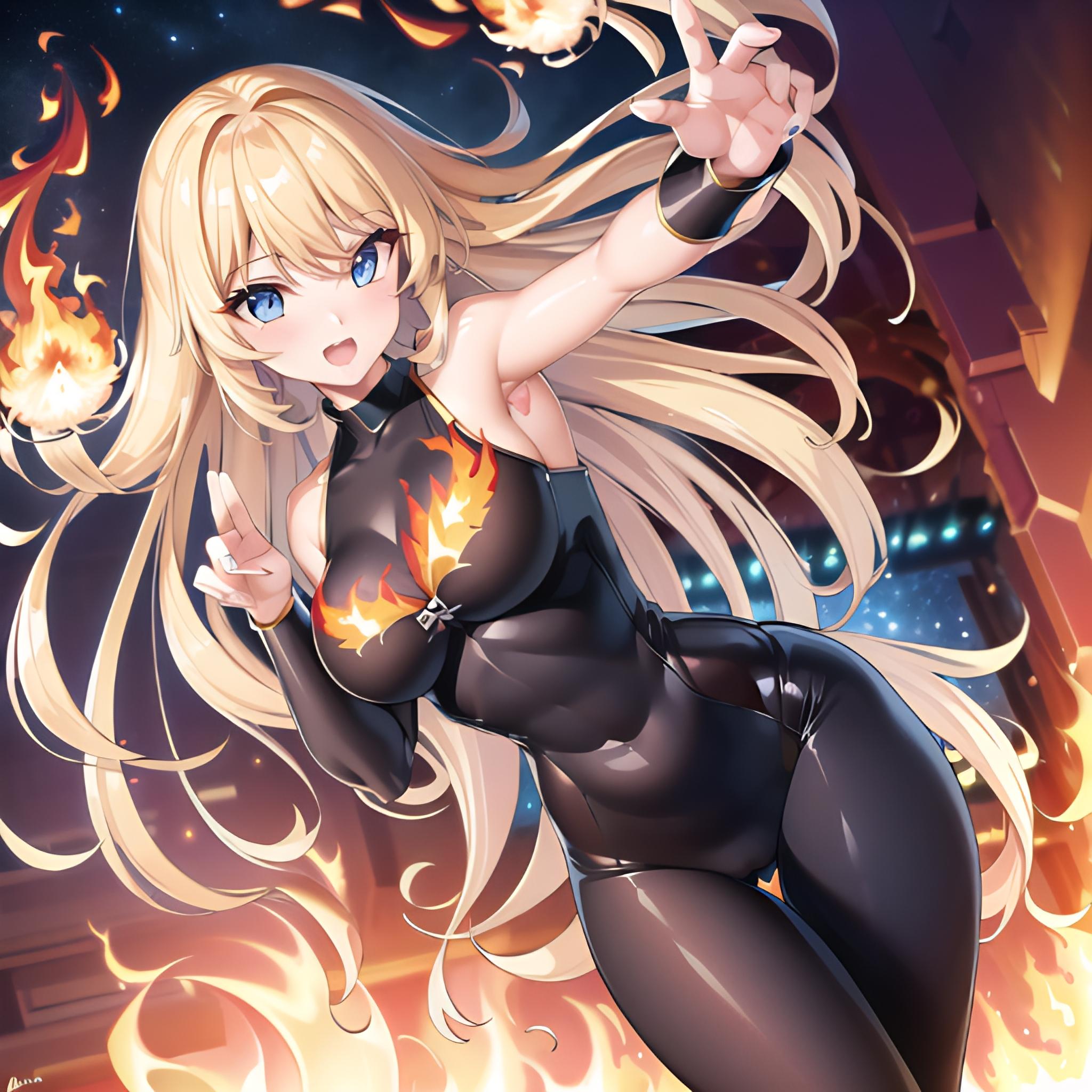 投稿後に見直したらfeetの方の足とか手が余分に出てたのに気付きされども投稿後なのでそのままスルー……で今のところ、体や髪そのものを炎には11枚目の右腕が一番近い(ただ、これはどう見てもtransparentな布の中でしか実体化してない?)、炎の肌となると3枚目の目元が一番それっぽいような?