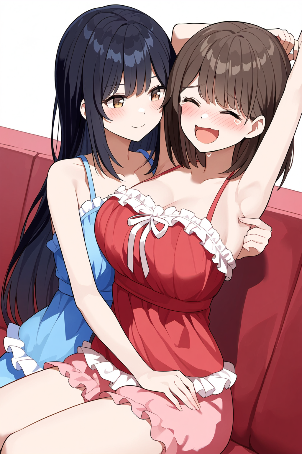 「ちょ、ちょっと!あははは!もうやめて~!ほんとにくすぐったいよ~!あははは!」「笑顔が素敵すぎて、もっと見ていたくなるの。だから、もう少しだけね。」