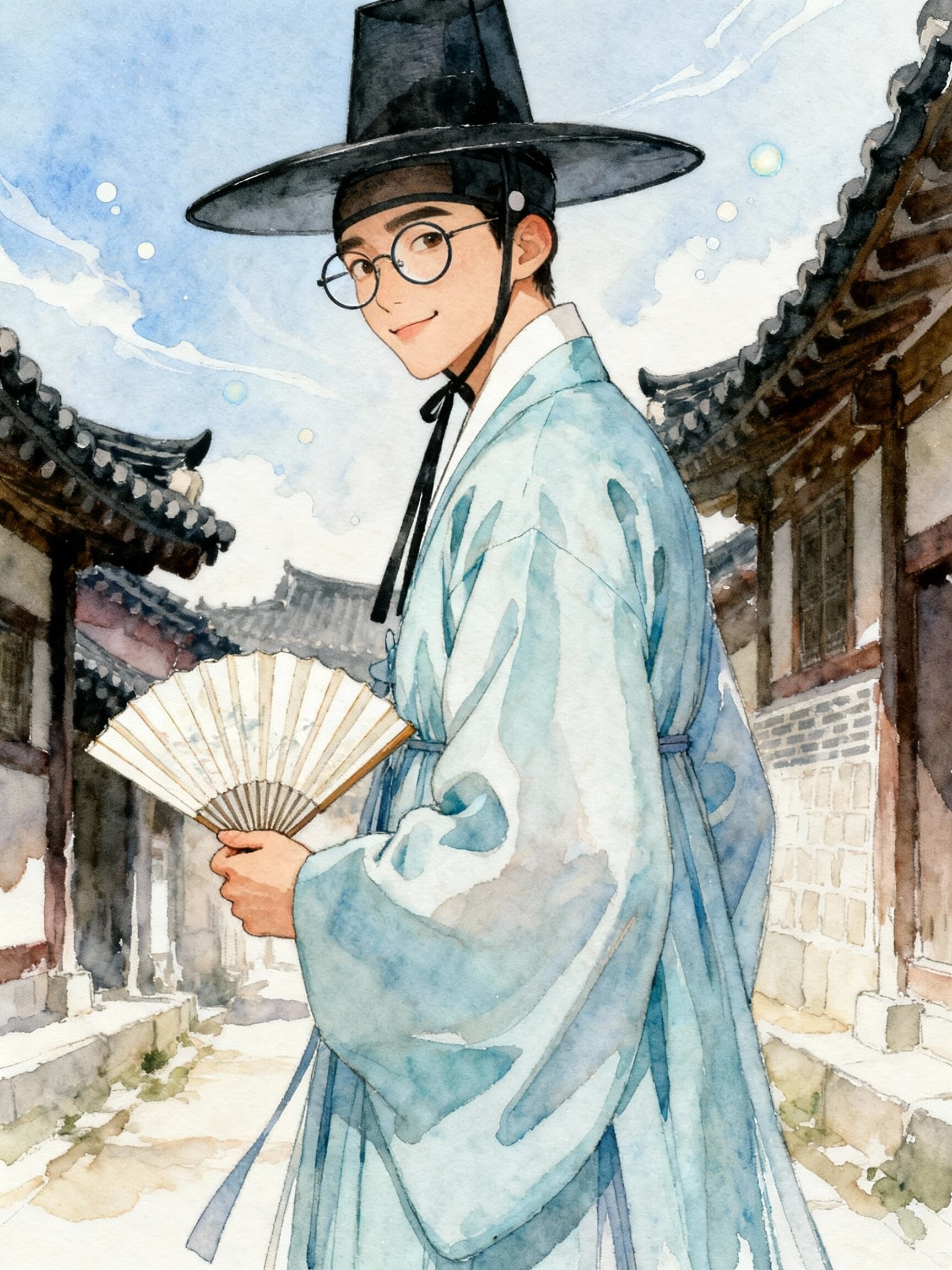 いい感じの水彩になったし、韓服・帽子・扇子や手の描写が正確なので満足ですw