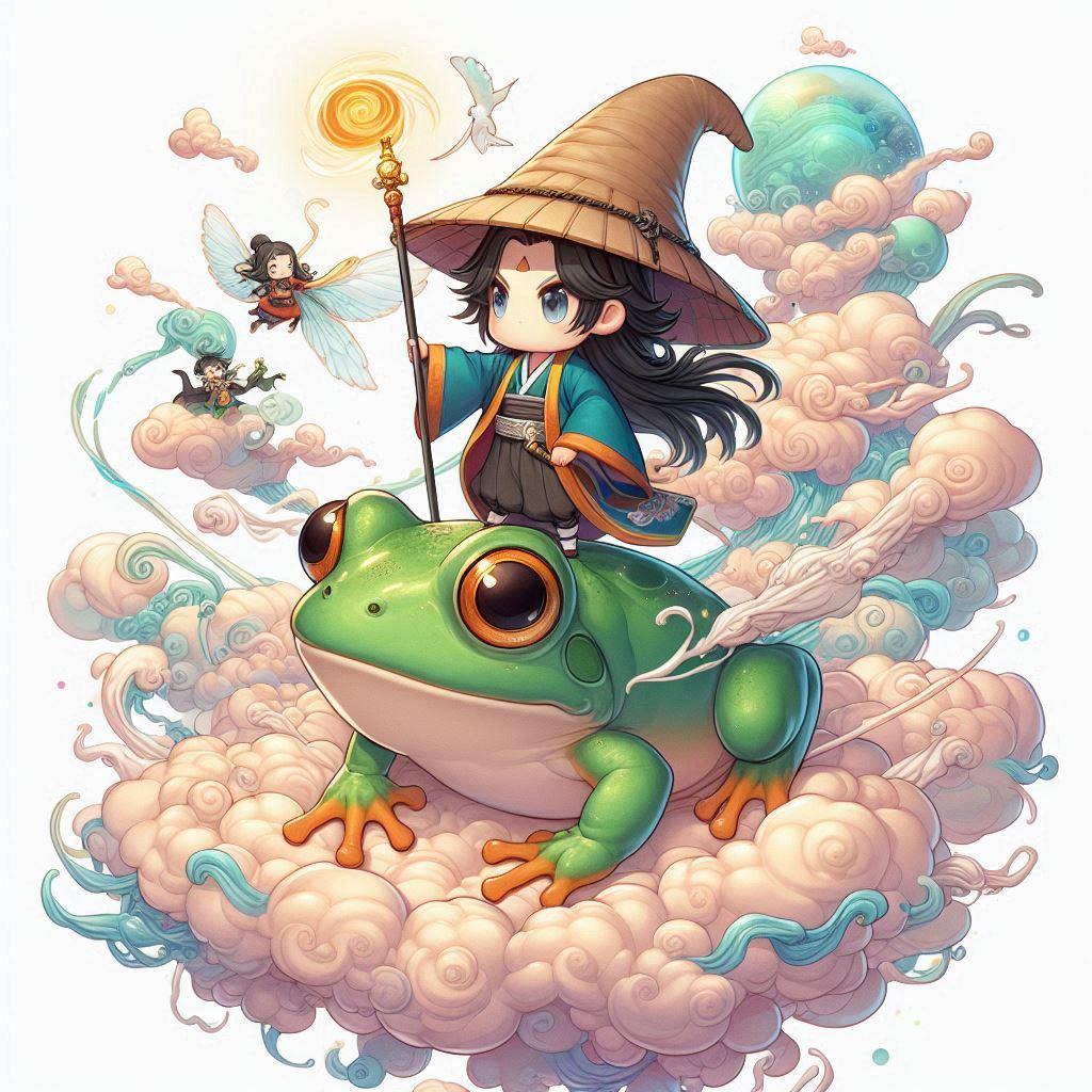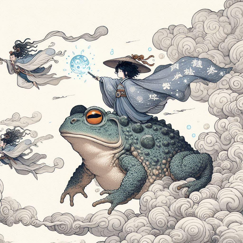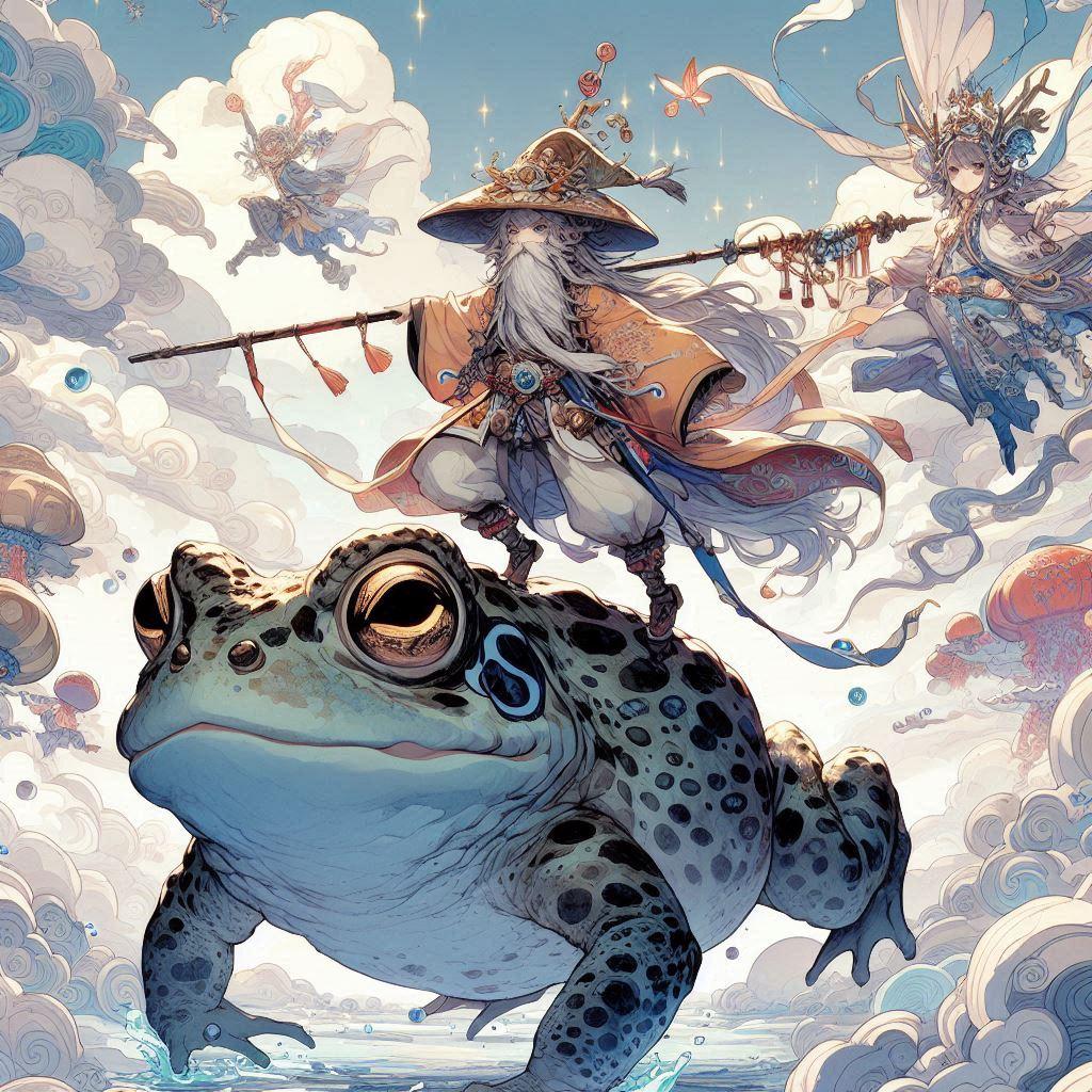 蝦蟇仙人(がませんにん)中国伝説の仙人、古い絵に登場する。