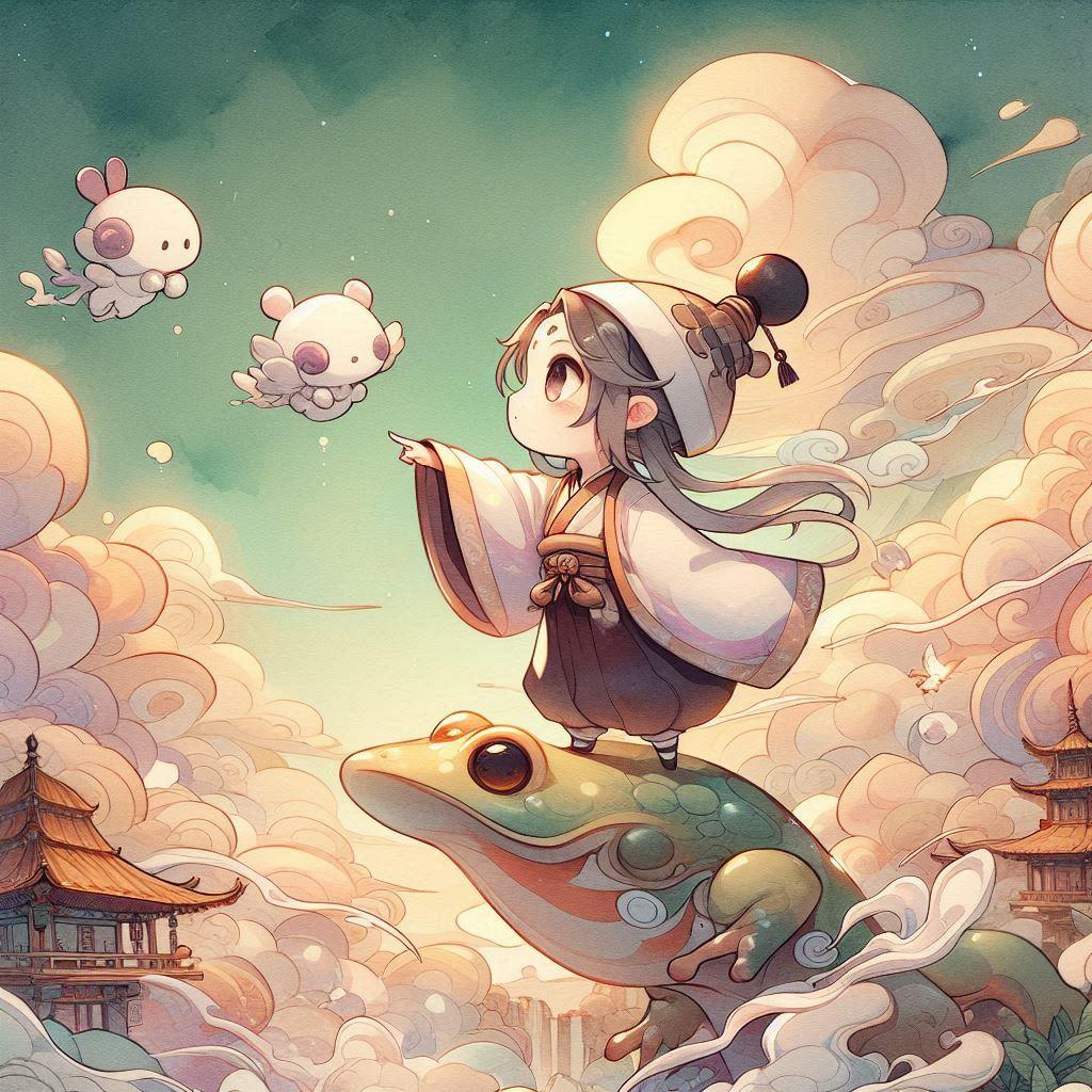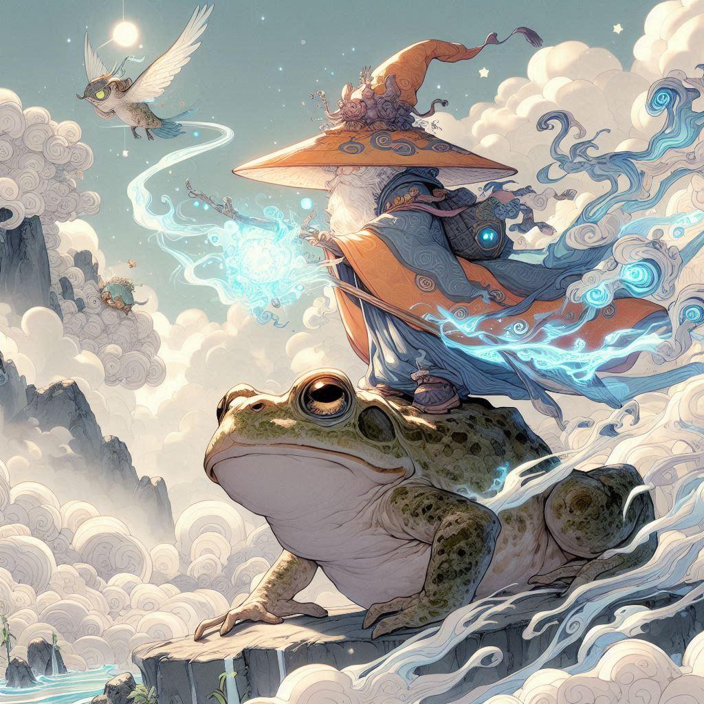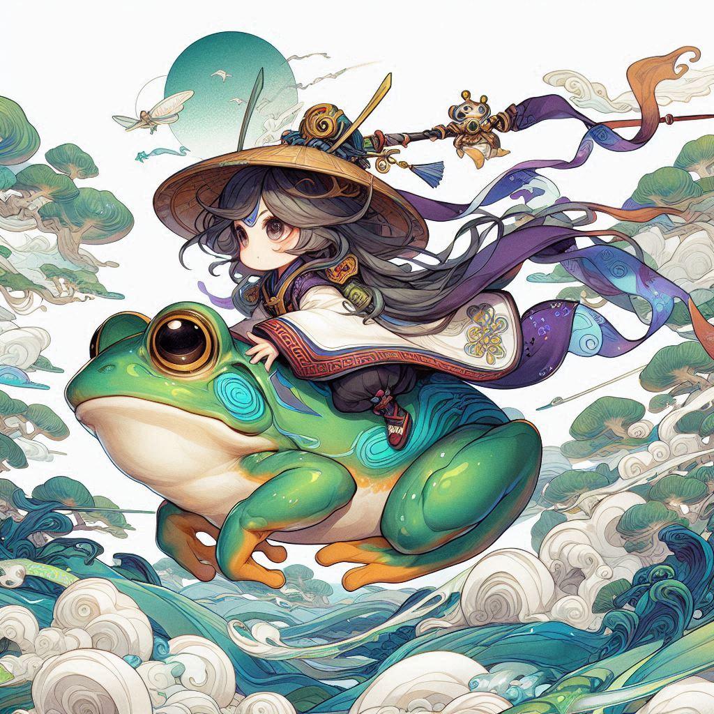 蝦蟇仙人(がませんにん)中国伝説の仙人、古い絵に登場する。