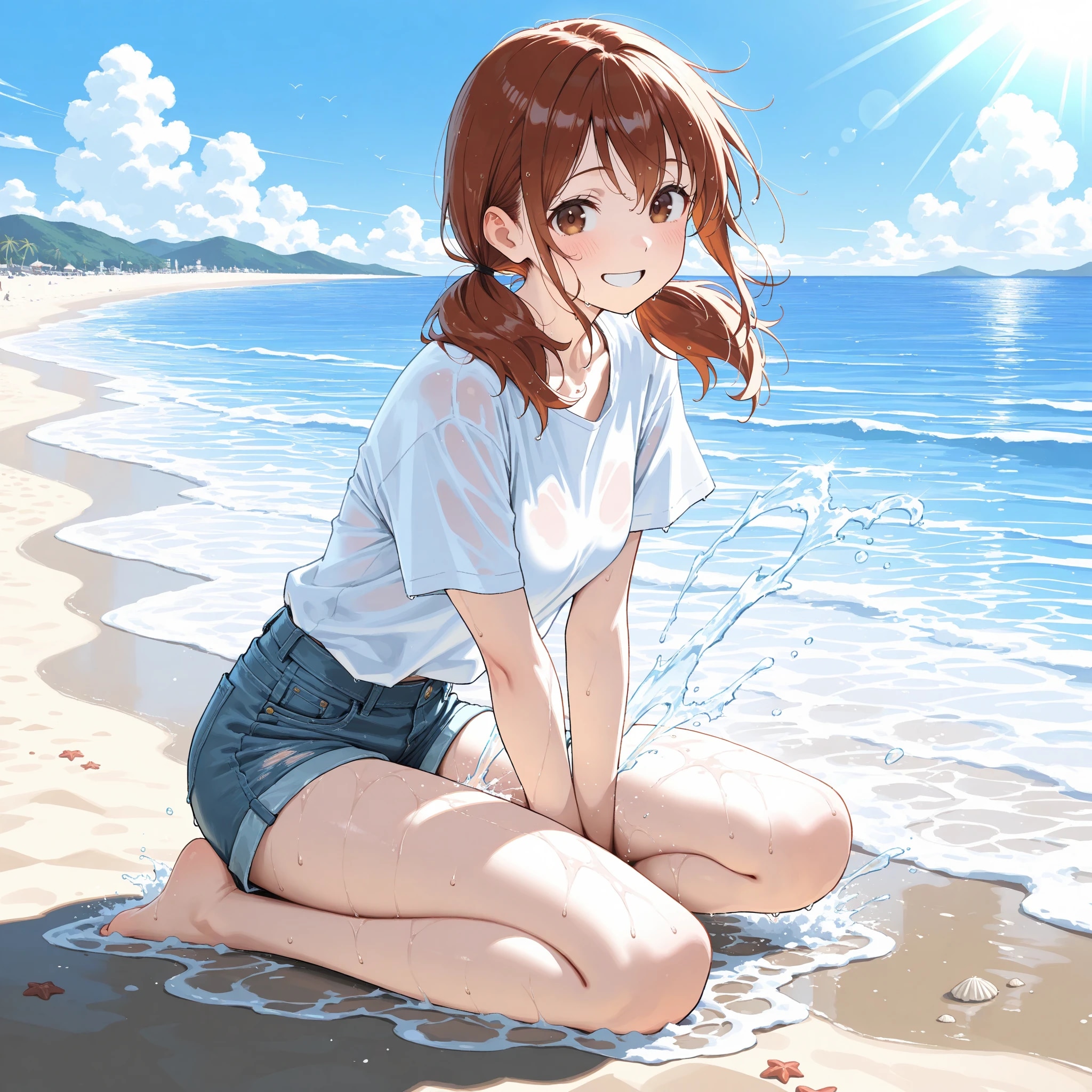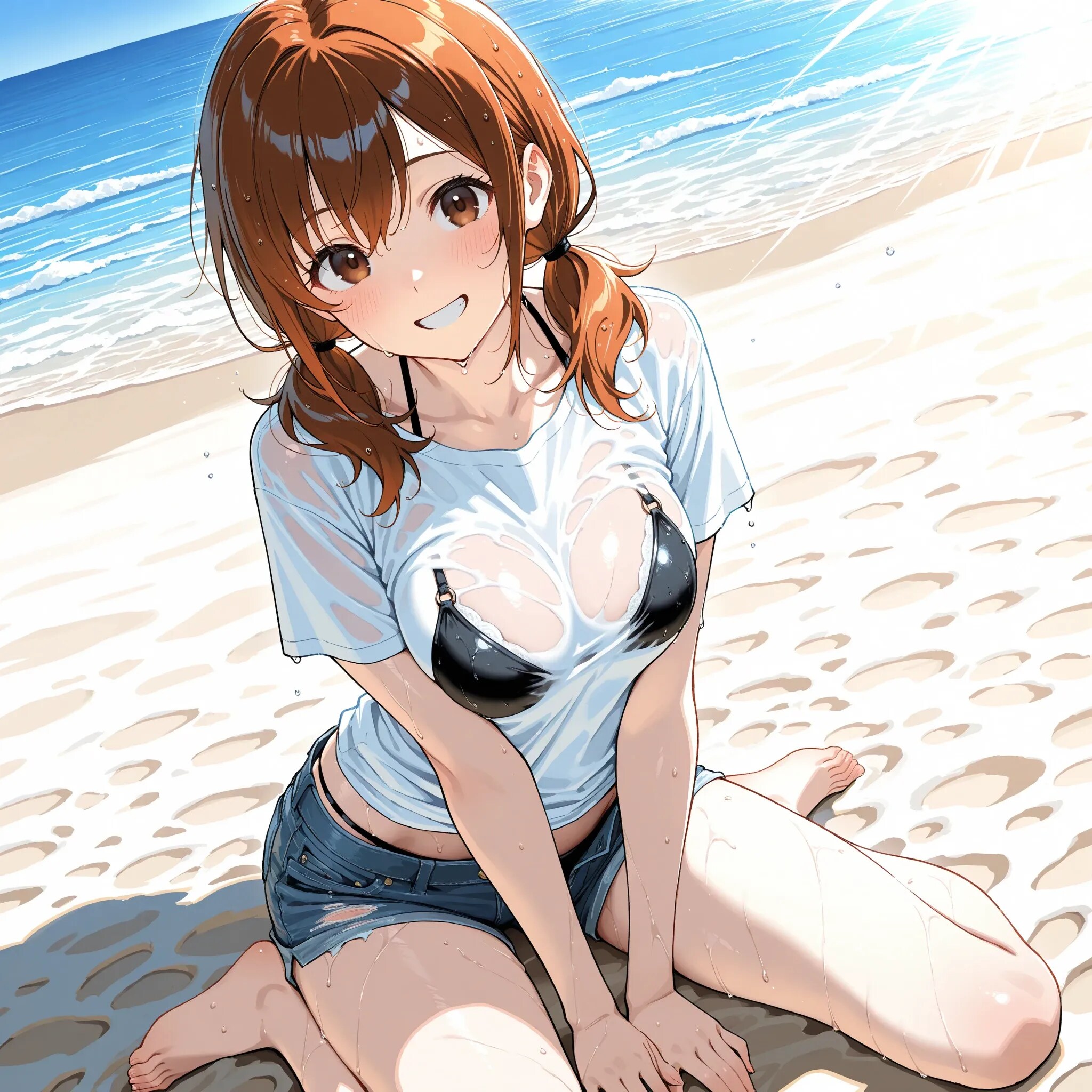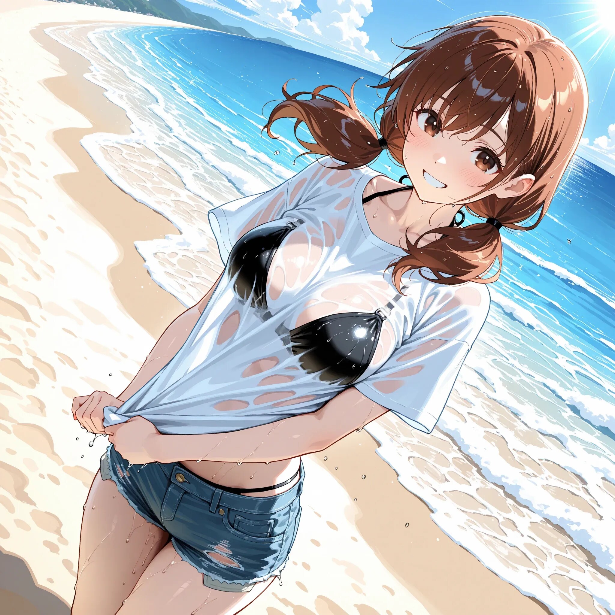 スケ○ヨさんごっこをするため、服のまま海に入っちゃった絵海ちゃん。