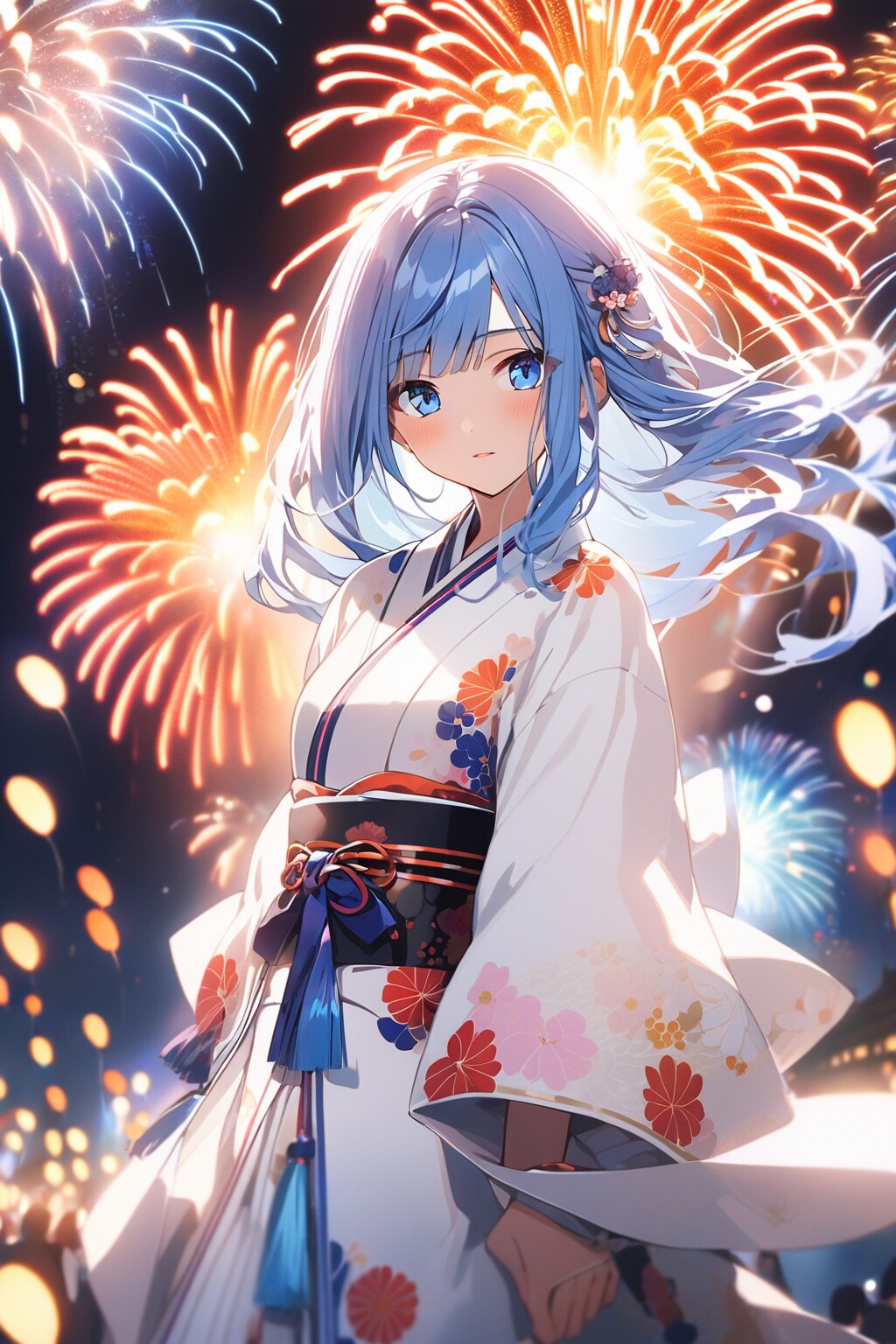 高く上がった花火。夏の様相と、黒い帯に白い浴衣。いつか君と添い遂げられるのだろうか?