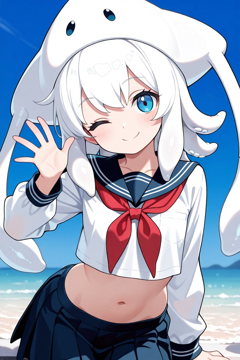 ヘソ→ゲソ→イカという連想から突然生まれました