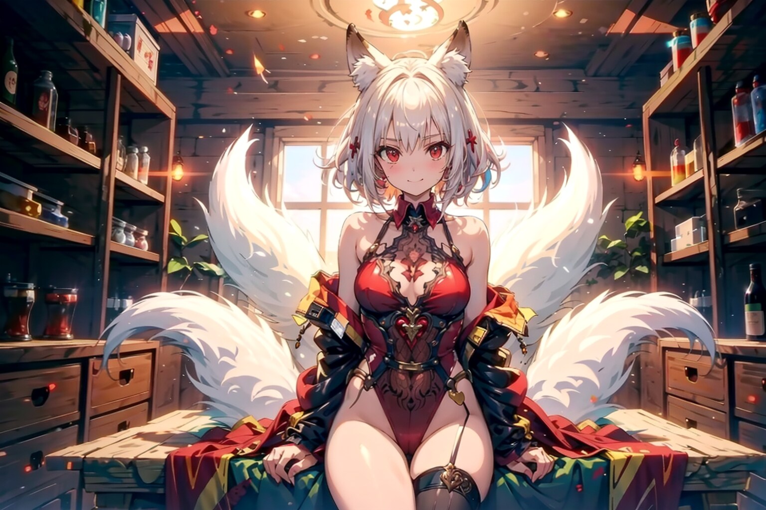 村人:「妖怪として強力なのは九尾の狐様の方じゃが、噂では化粧がケバくやや年増じゃと聞く?、それに比べ四尾の狐様は見た目”うら若き乙女”で、普段着は”ハイレグ”じゃ!!」