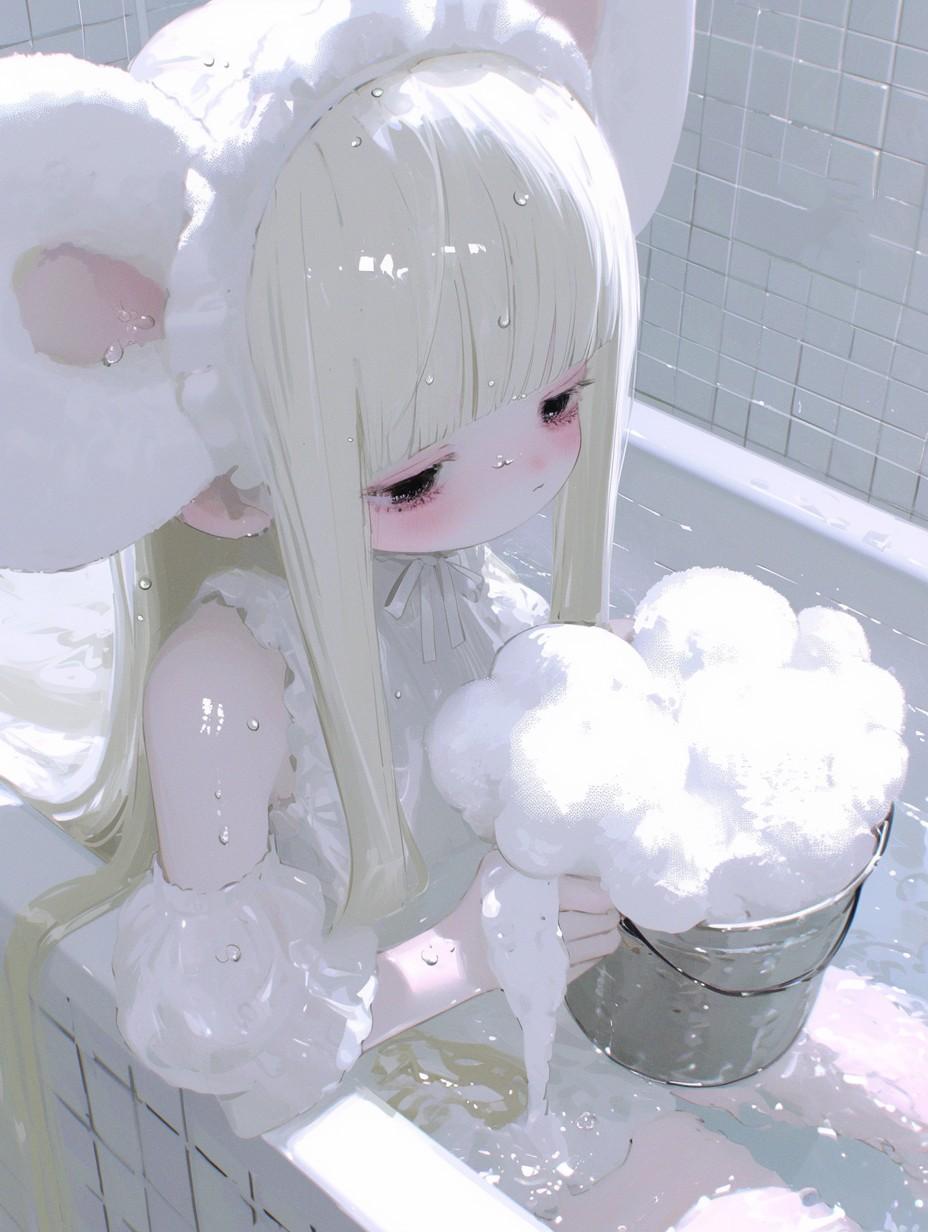 ⑤その後もどじっこで汚れまくったメイドちゃんは、お風呂に入って今日のミスを反省するのだった…