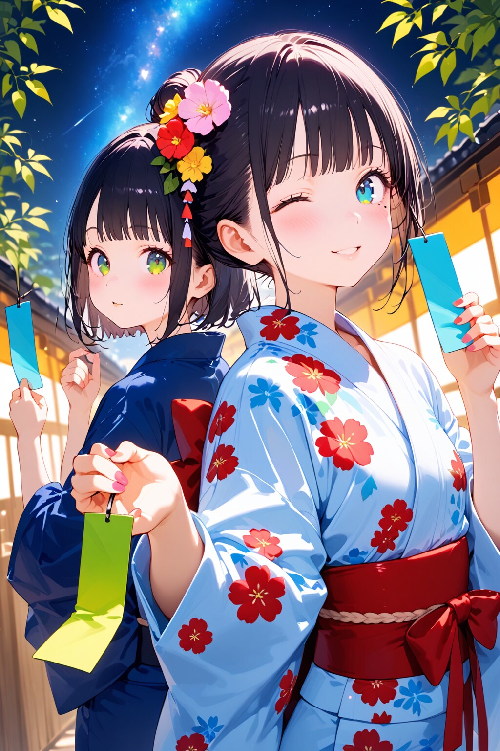 七夕限定の絵梨奈ちゃんと美希ちゃんのコラボ生成です❤️