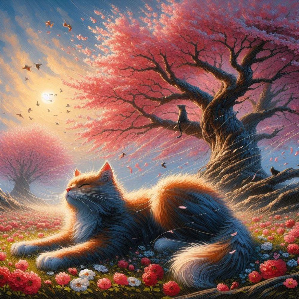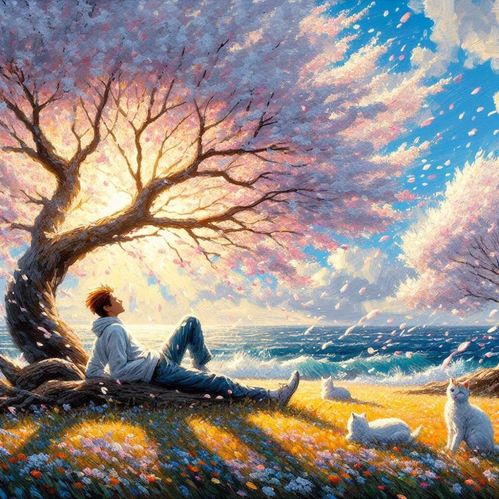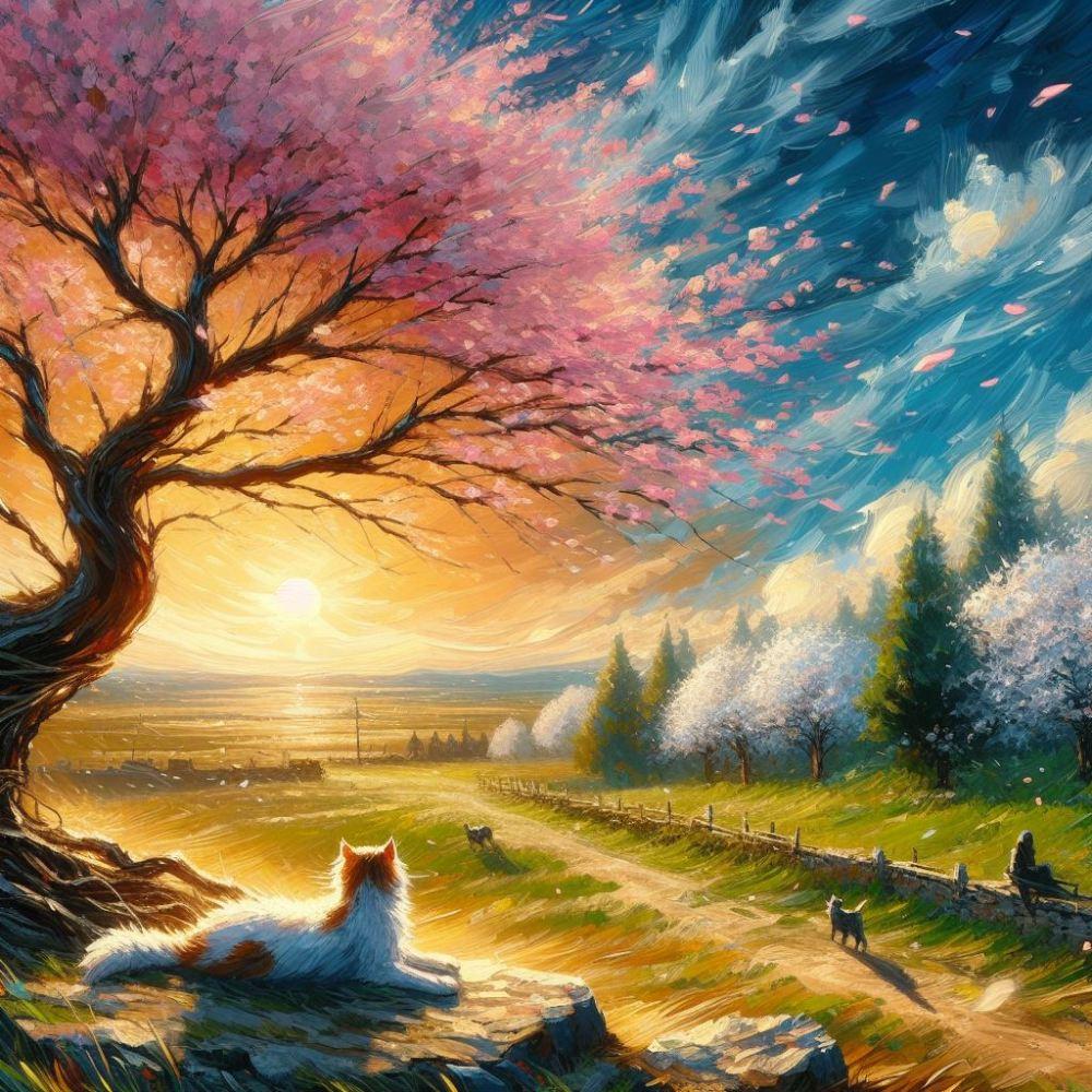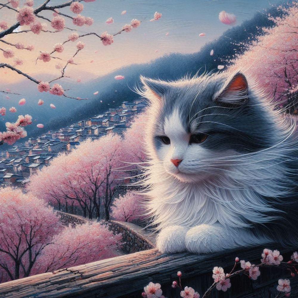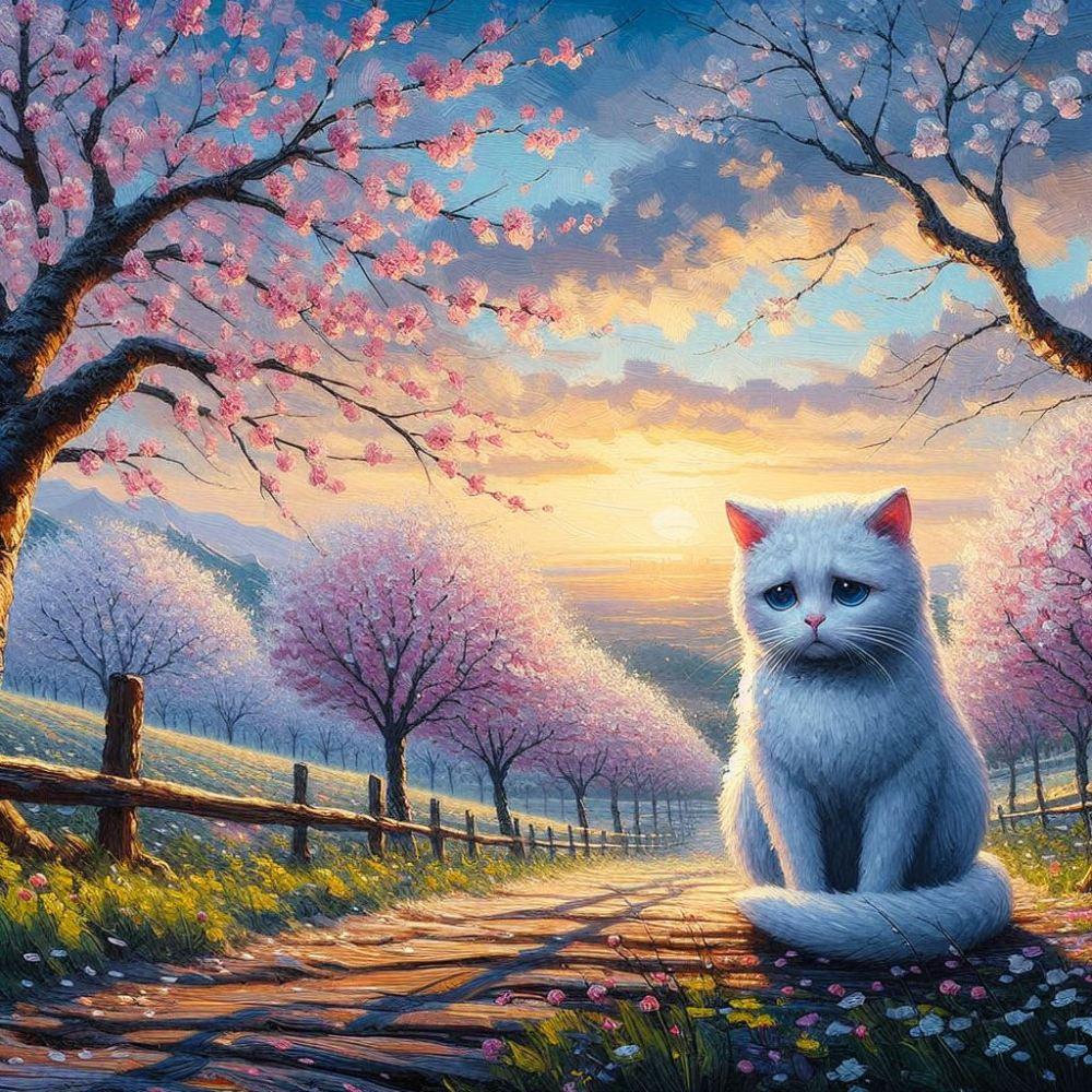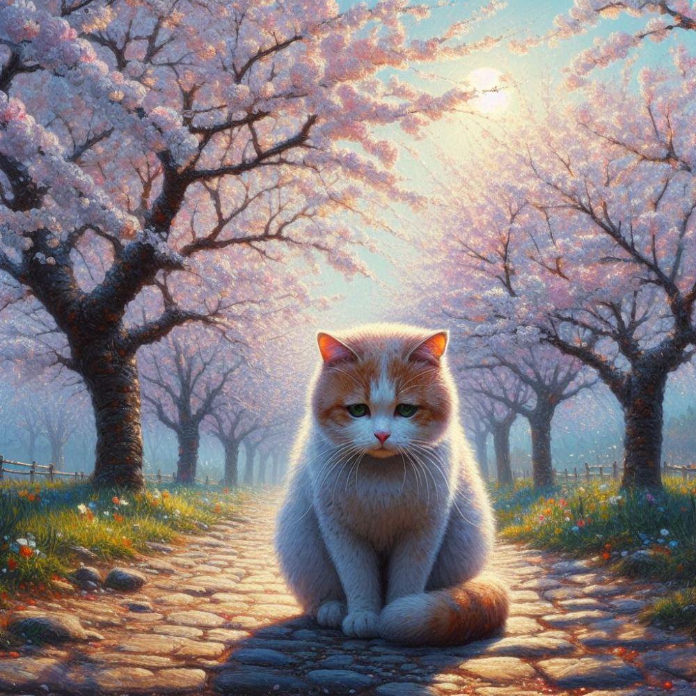 アクリル風 春桜 #伏し目 猫