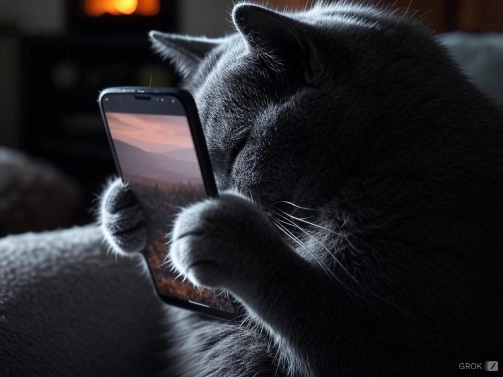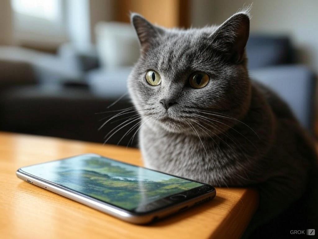 あるにも関わらず…猫はスマホを見続けてしまう状況に対してハンマーを持ってきて壊した。