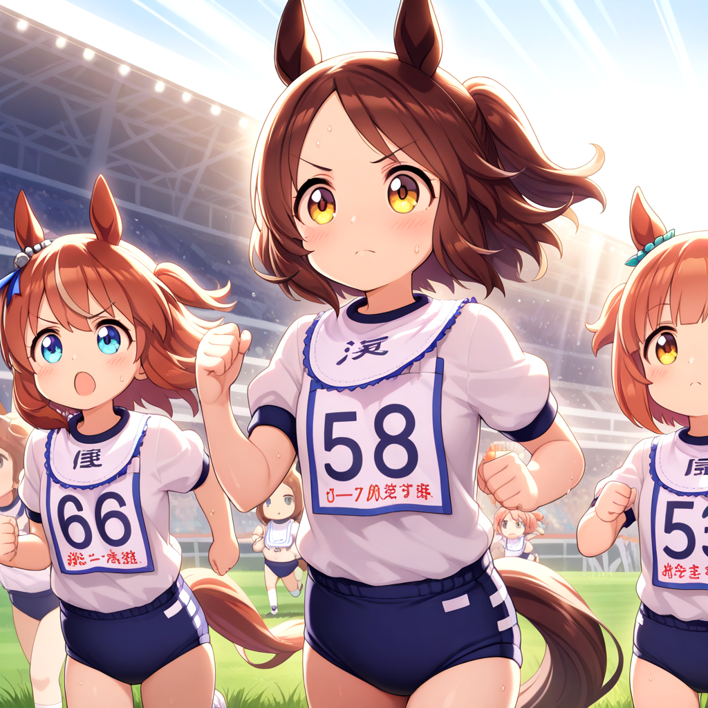 オリジナルのウマミミ娘を描きたかったのですが、どうも既に「あの娘達」が学習されているようですね。(^^;