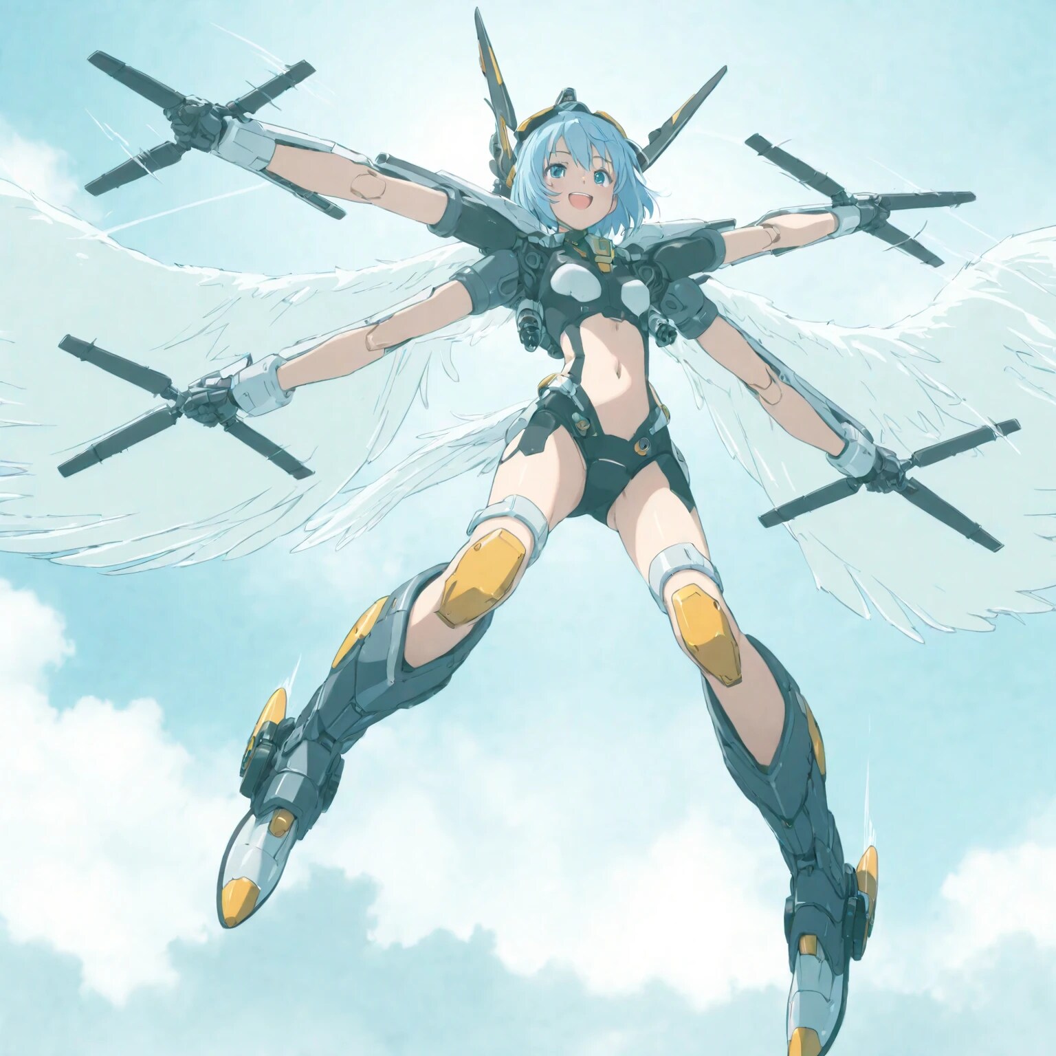 頭上から声が響く。4本腕のプロペラに背中の翼、両足のジェットノズルで自由に空を翔ける能力がありながらも、彼女は俺の仲間になることを選んだ。