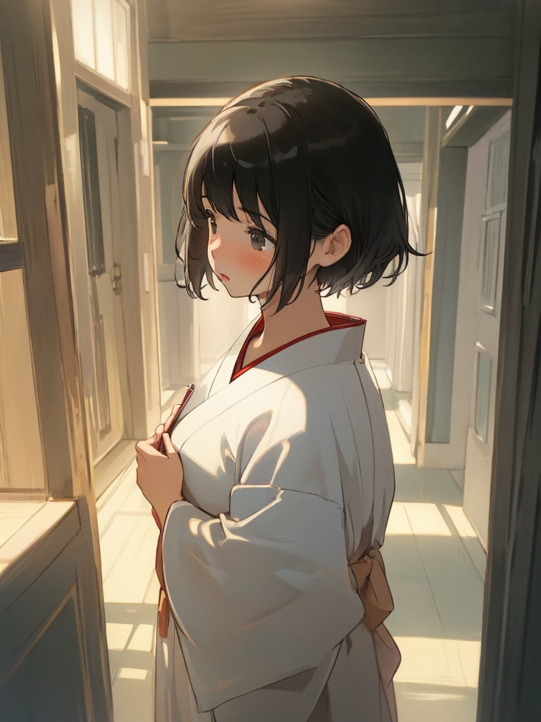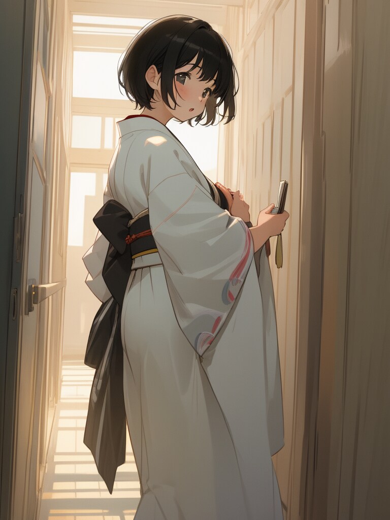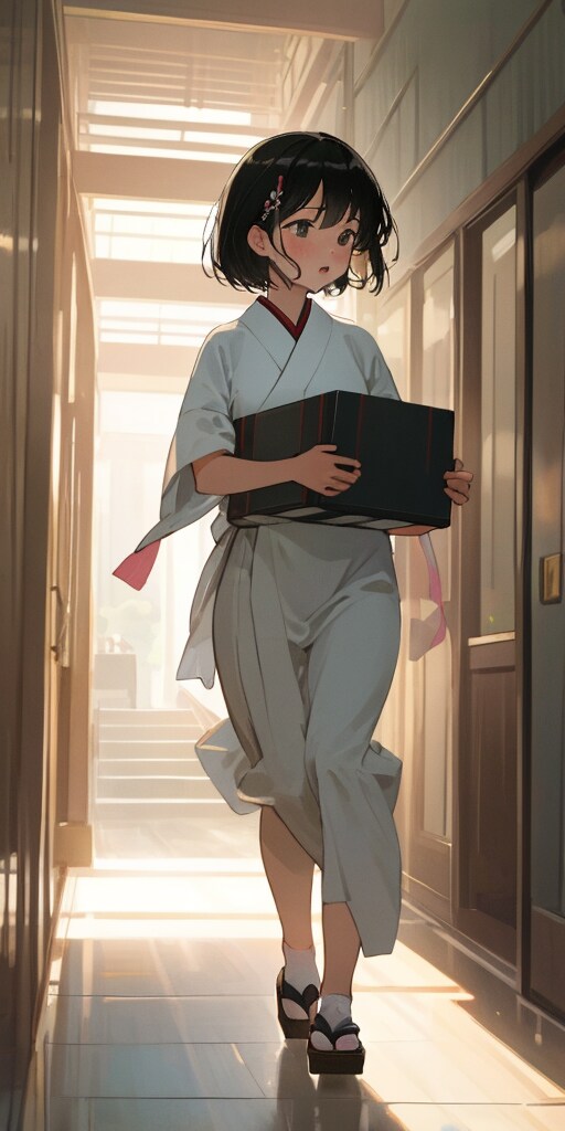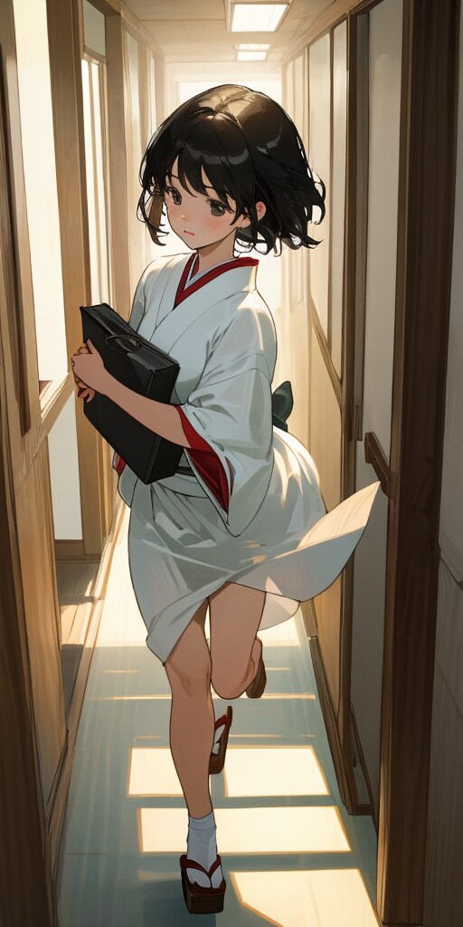 お客さんが見ていない場所では裾を乱して急ぎ足。