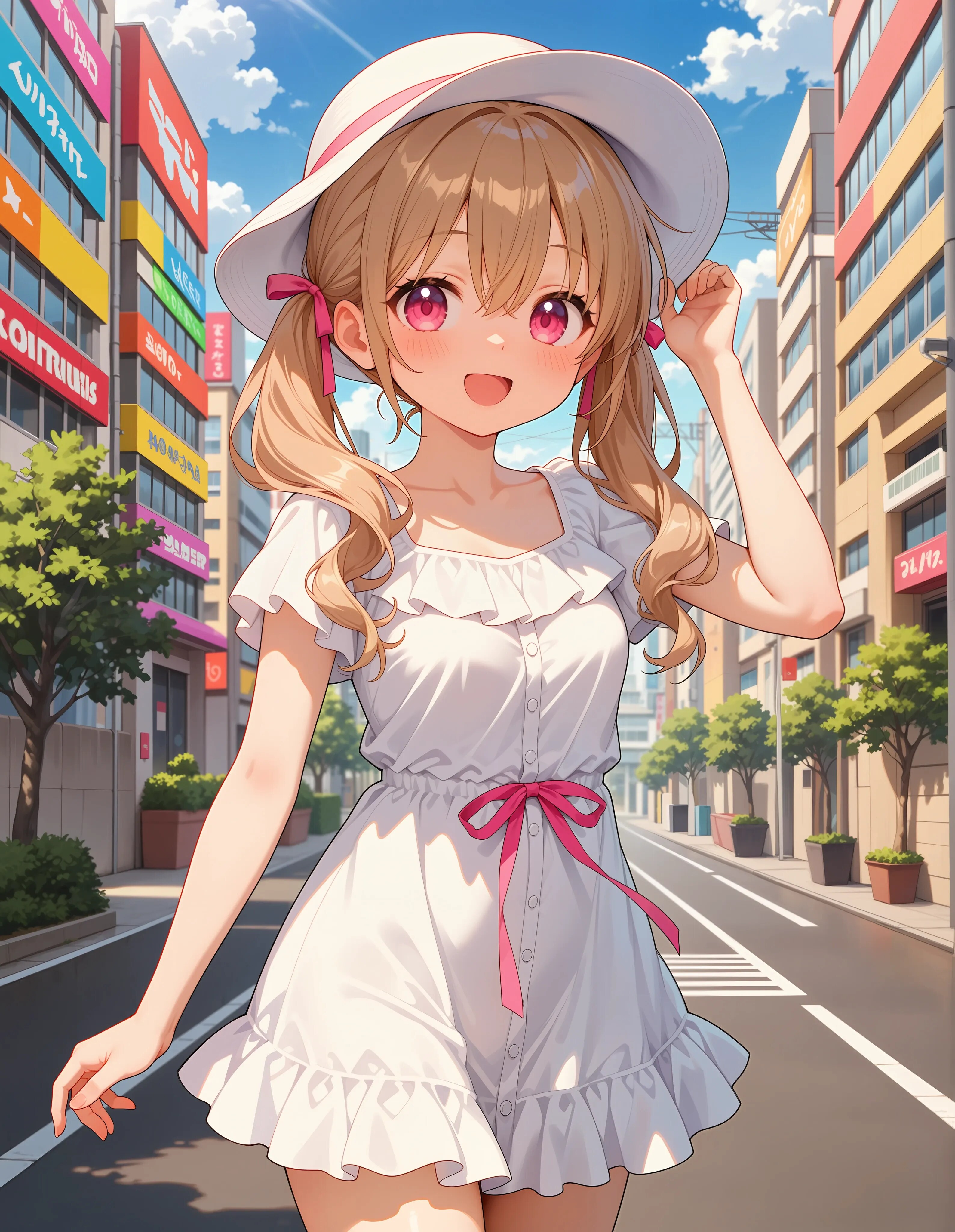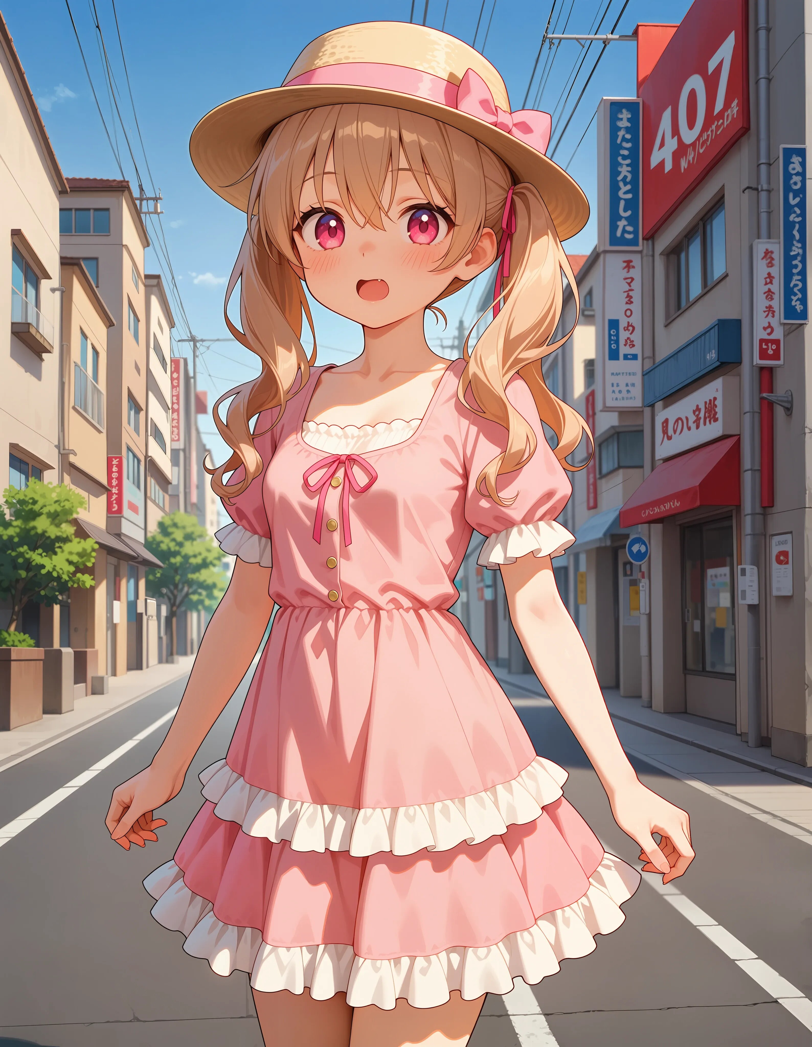 涼しげな半袖ワンピの短めスカートをヒラヒラさせながら