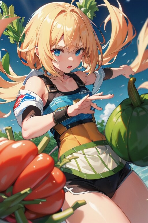 6枚目 腕の付いた戦闘機が、機械化された野菜と戦うシューティングゲーム