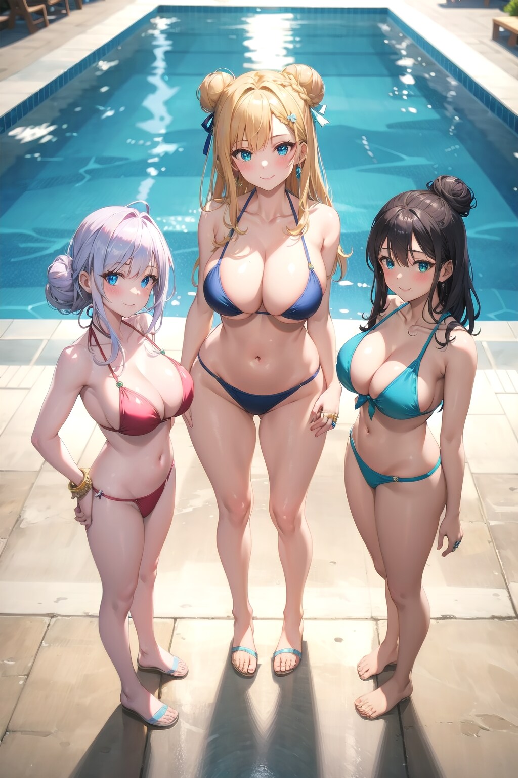 プールで水着の女の子達に囲まれて。実は妖子さんも一緒です。