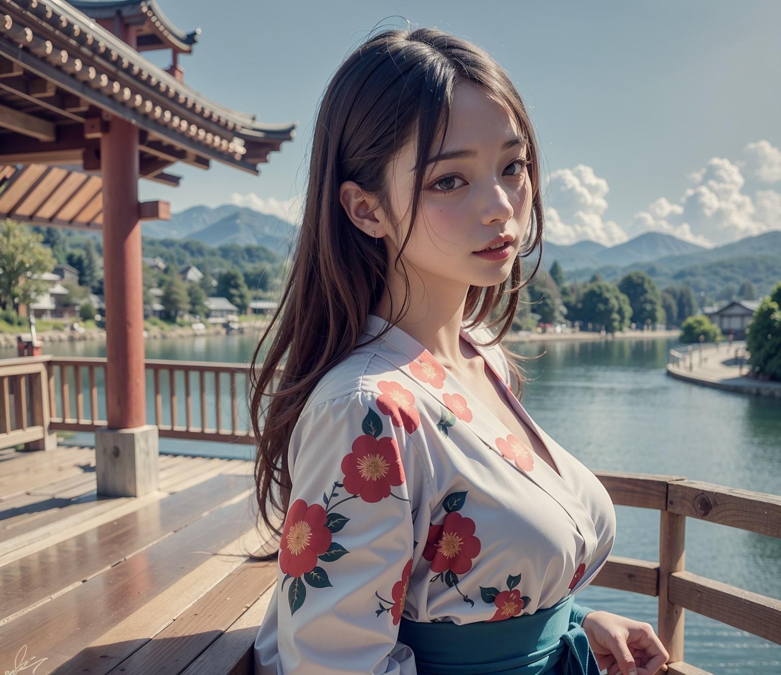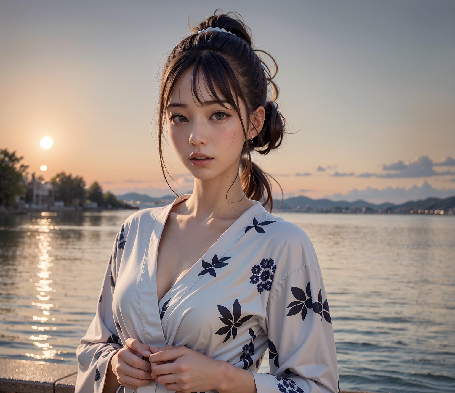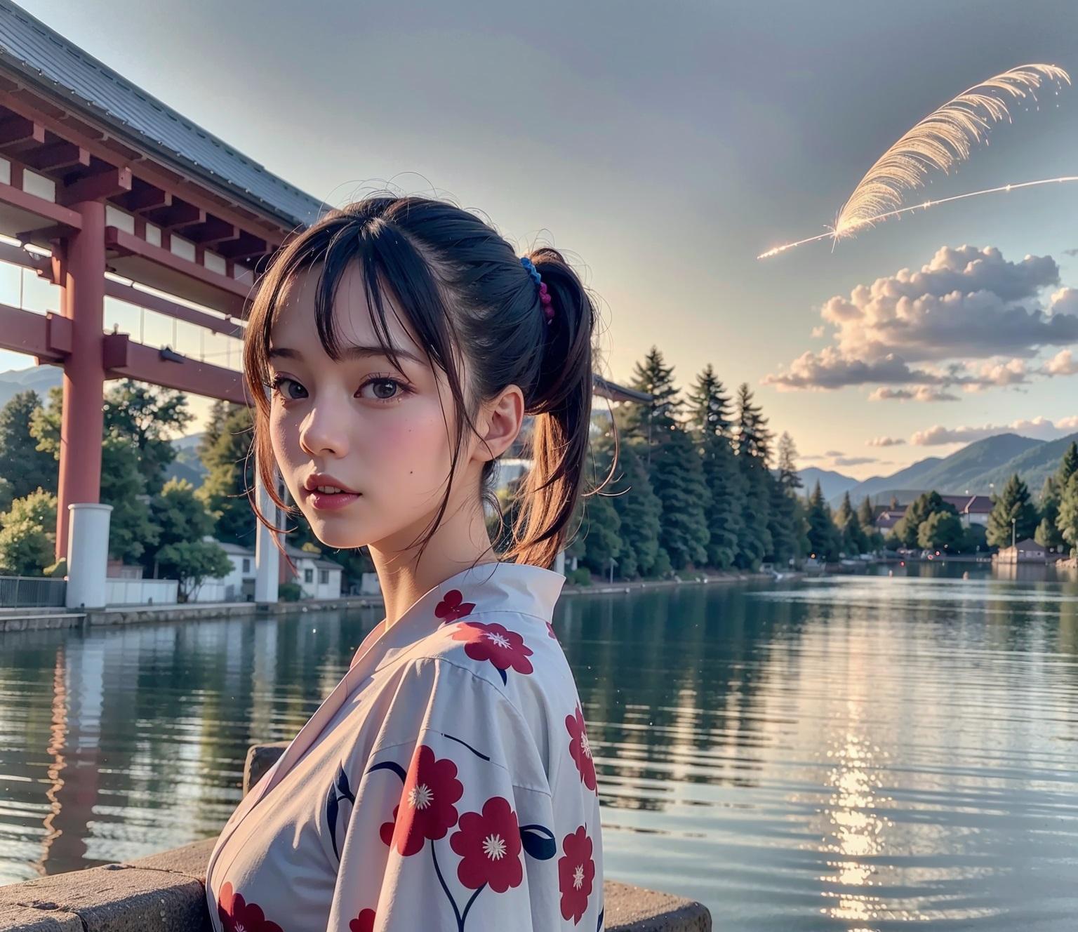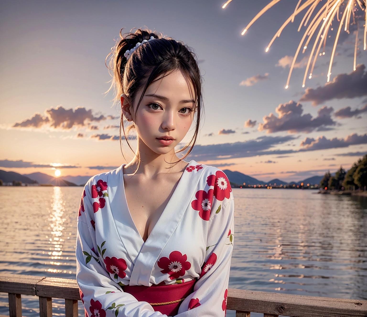 少しでも清涼感を味わいたくて浴衣と湖と花火(花火あまりでない)を描いてもらいました。
