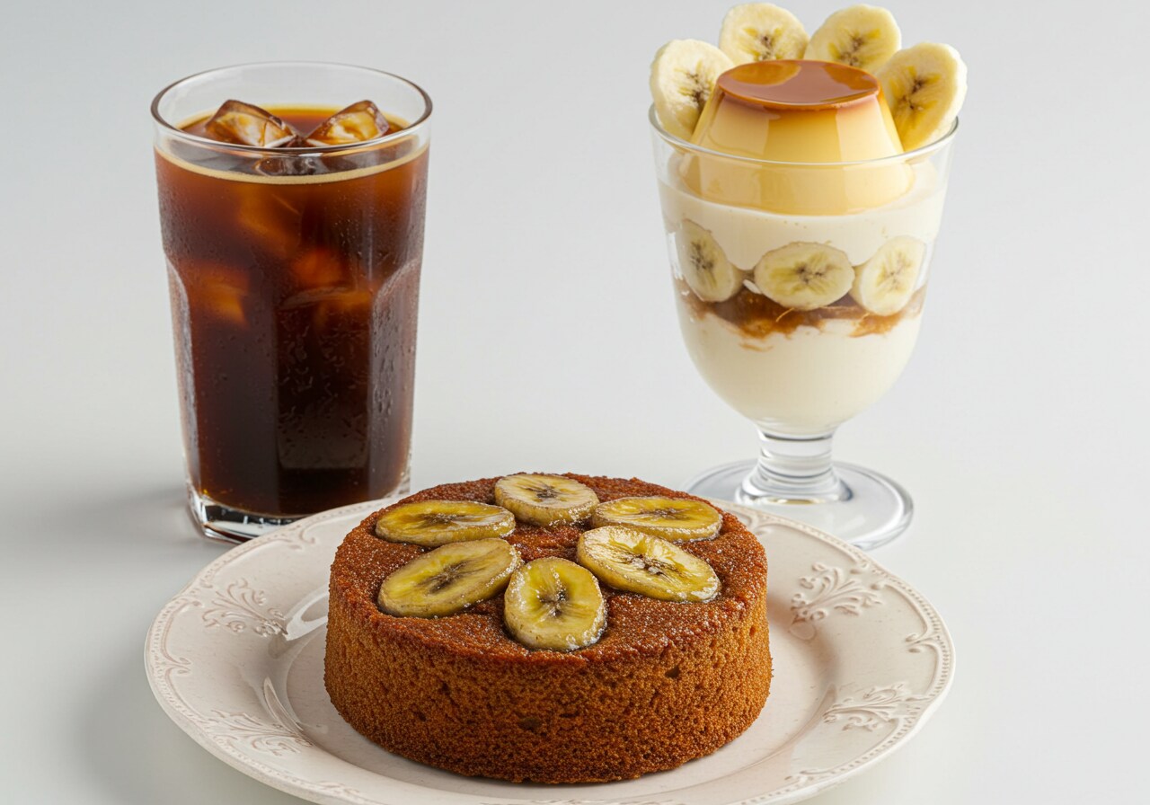 本日のデザートは、8月7日は「バナナの日」らしく、バナナケーキに、バナナプリンパフェのセットで御座います。