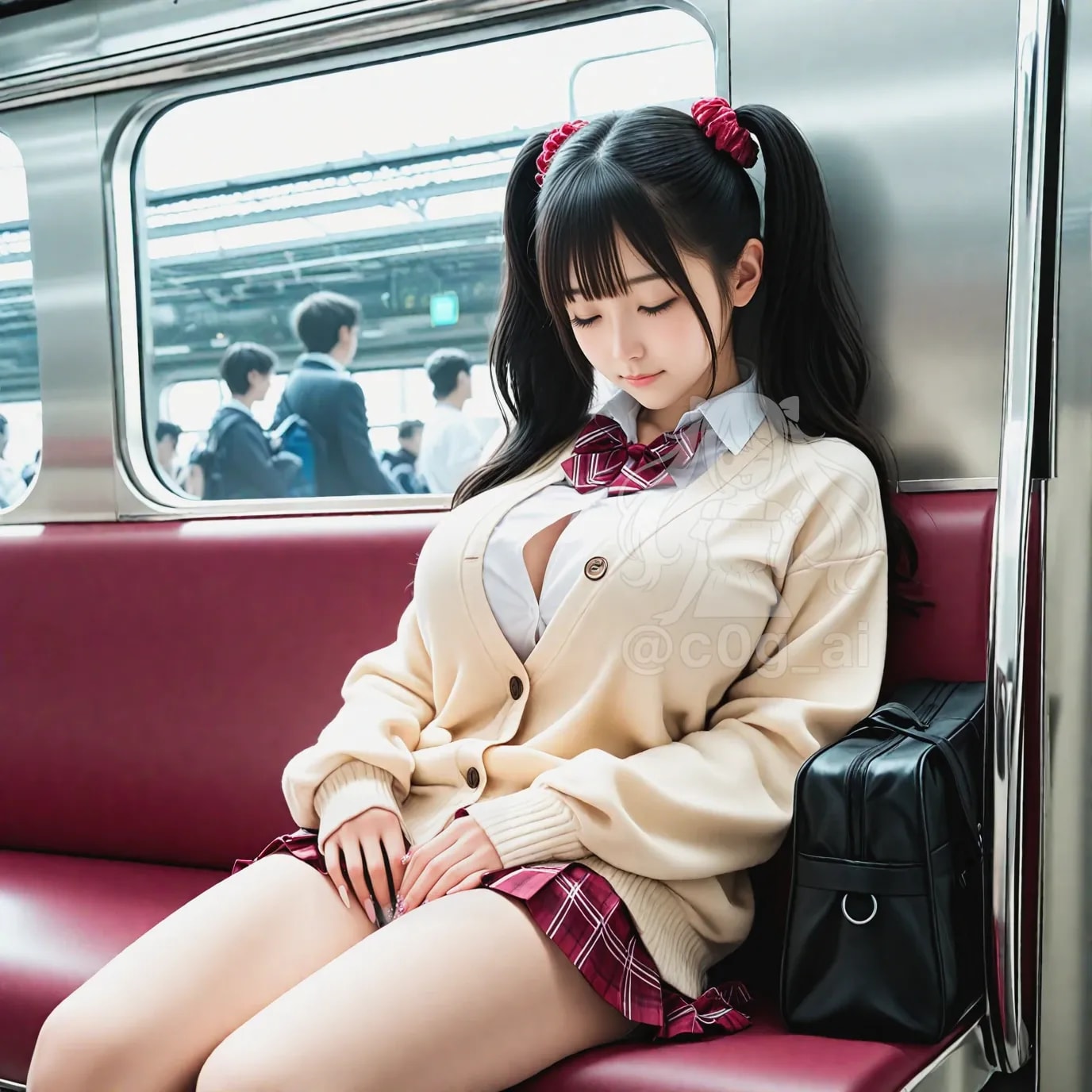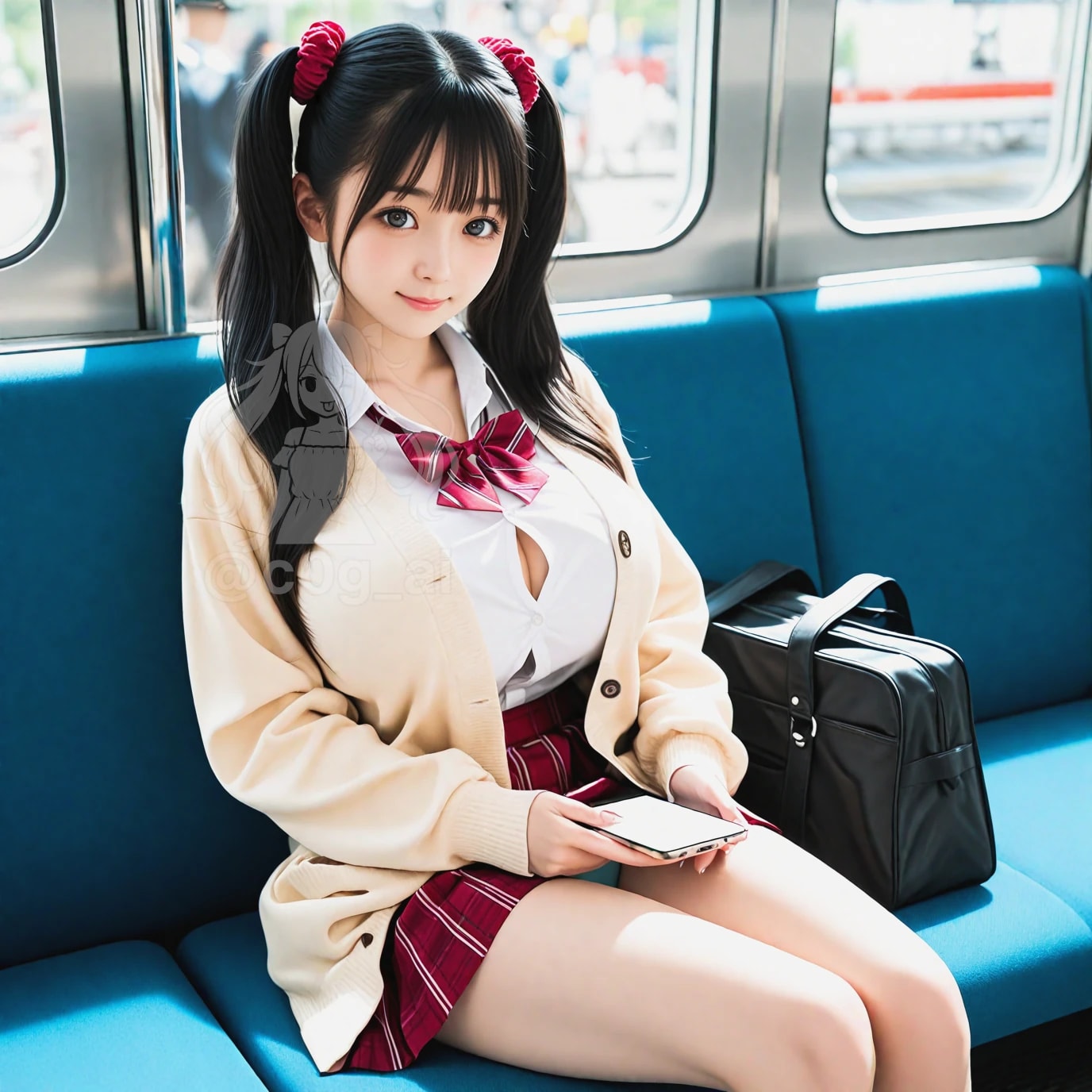 ツインテ × カーディガン × 巨乳 × 天使の小窓 × ミニスカ制服コスプレの成人女性ですw