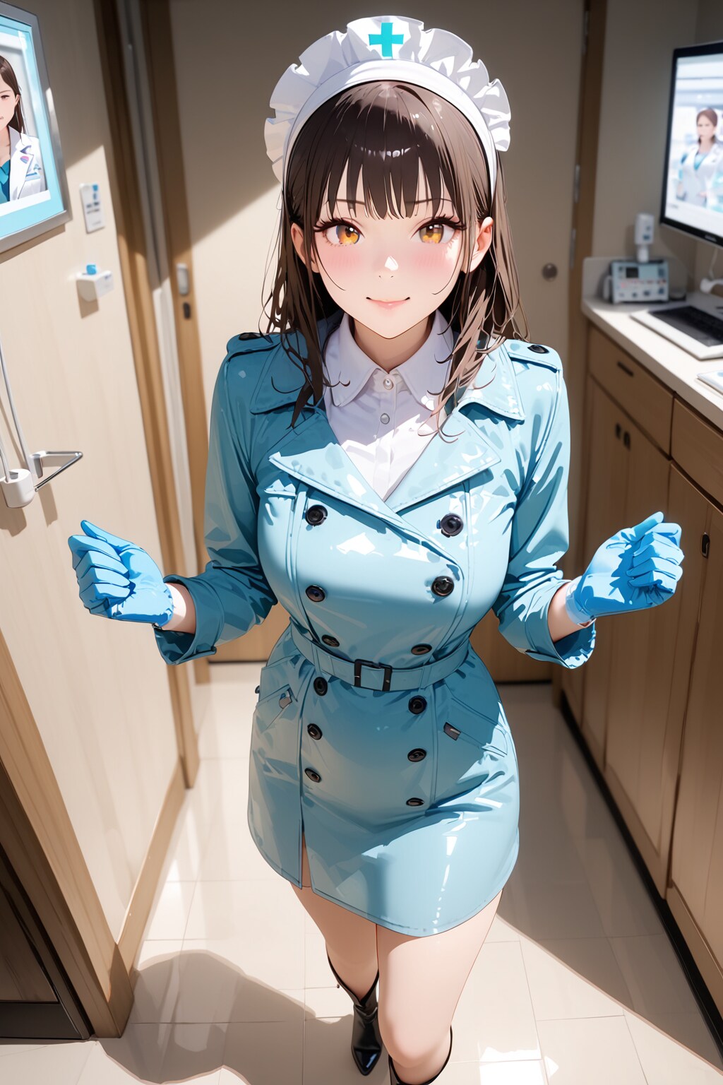 水色トレンチコート