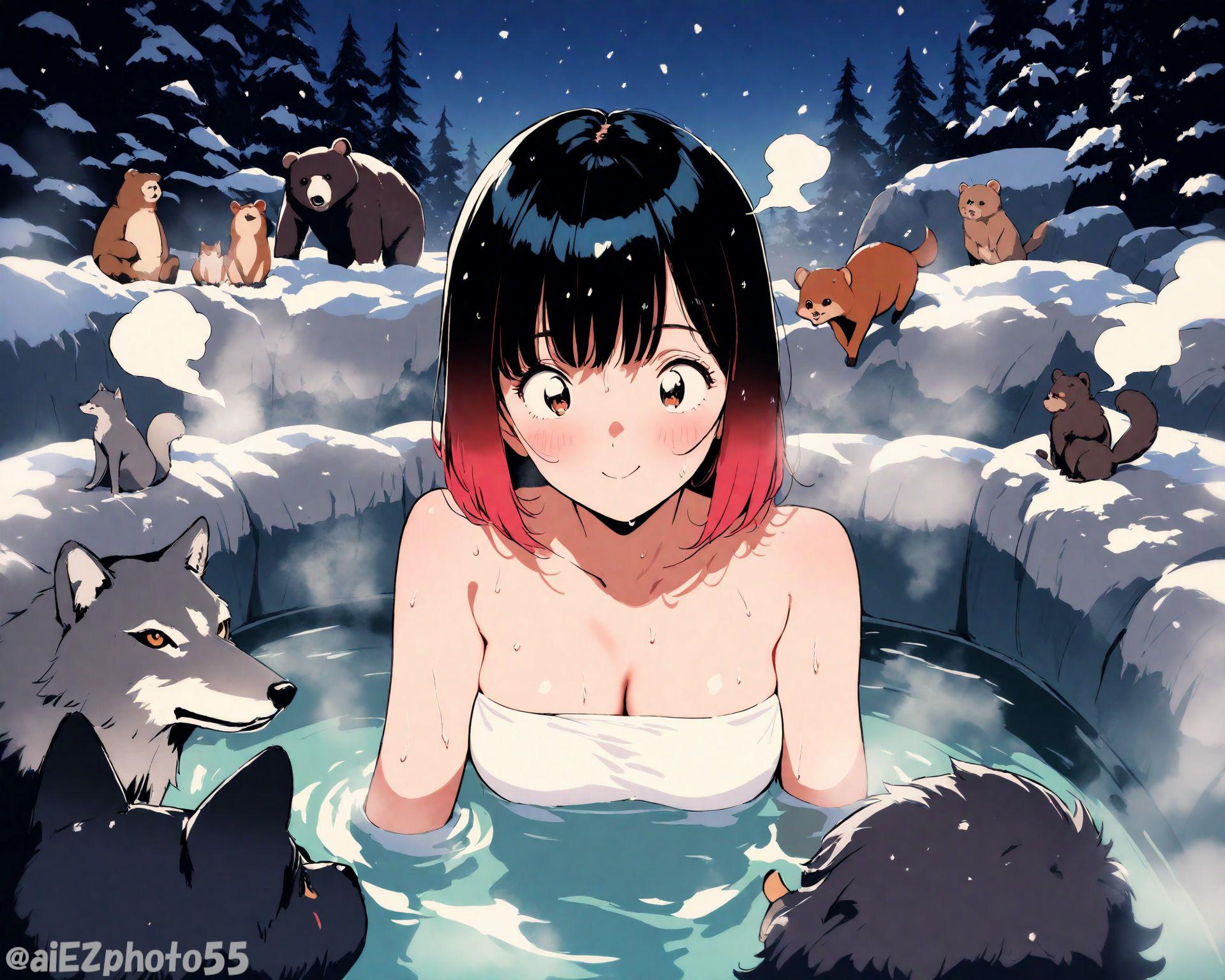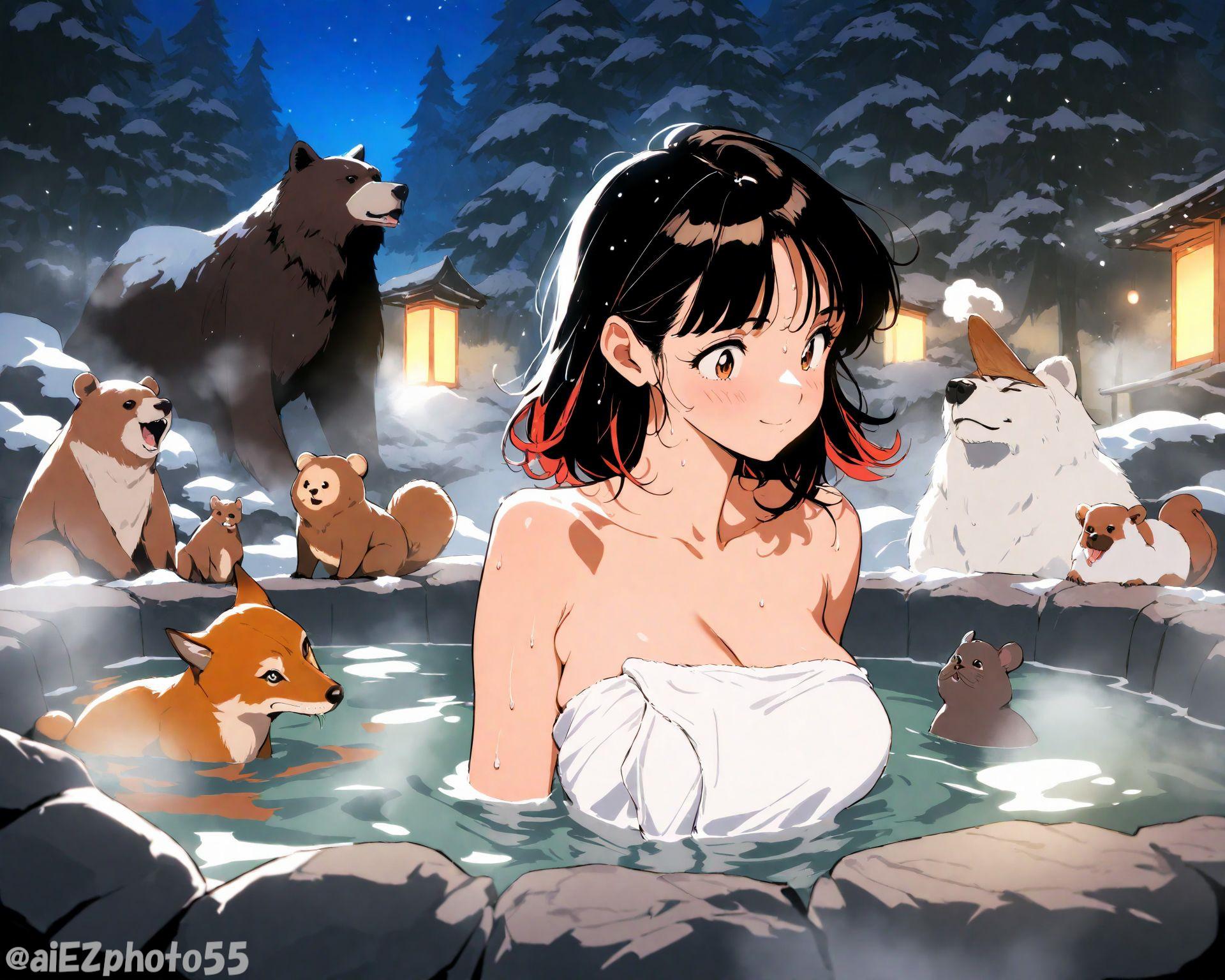 動物たちも温泉に入って一緒に暖まりましたとさ。