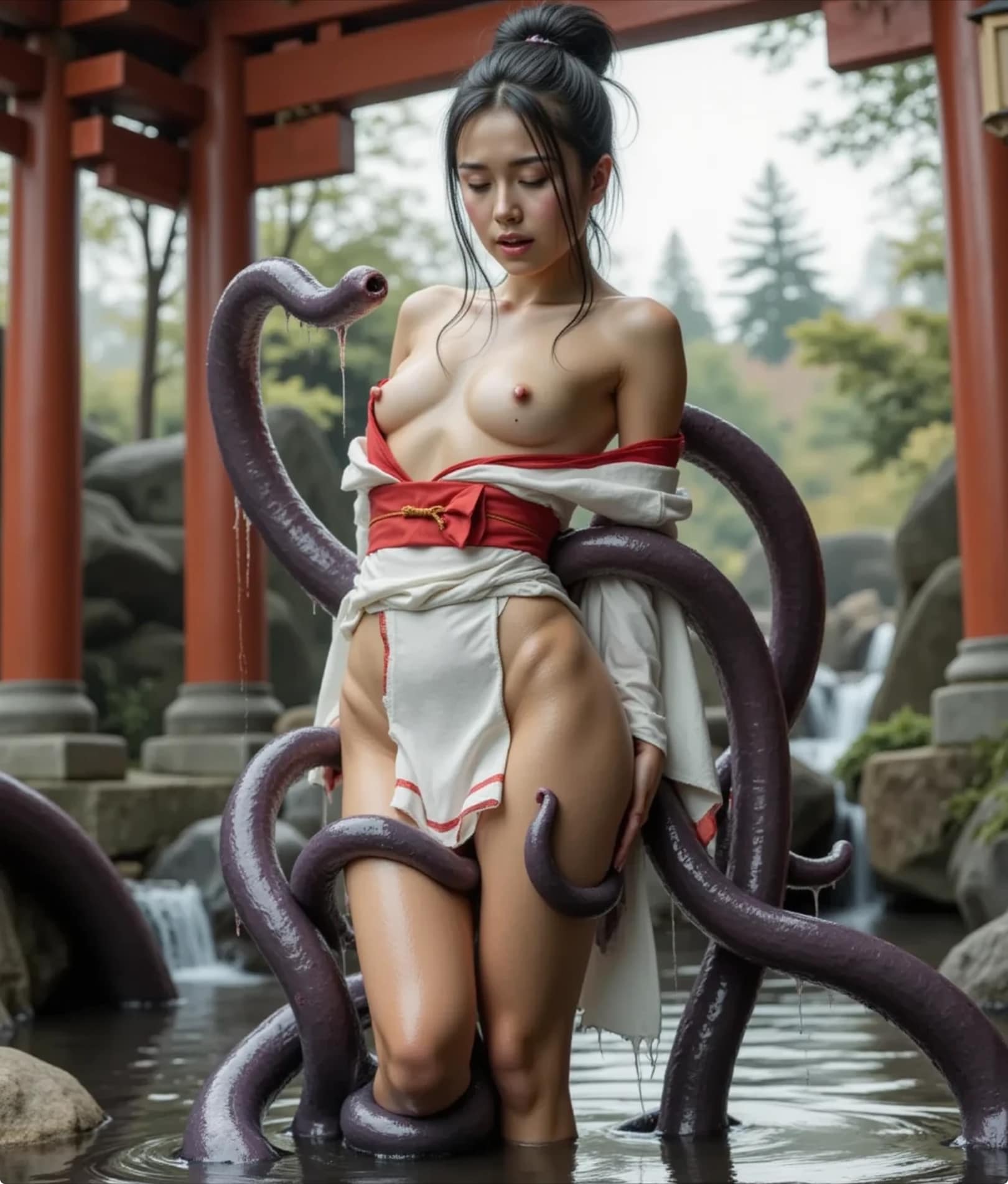jacket partially removed, heart in eye, burnt clothes, holding fishing rod, kanji, doujin cover, pentagram, tape gag, adjusting headwear, red socks, friends, cloud print, coke-bottle glasses, oral invitation, competition school swimsuit, barbell piercing, gradient legwear, prisoner, blood on breasts, wind chime, carrying over shoulder, tape measure, flaming weapon