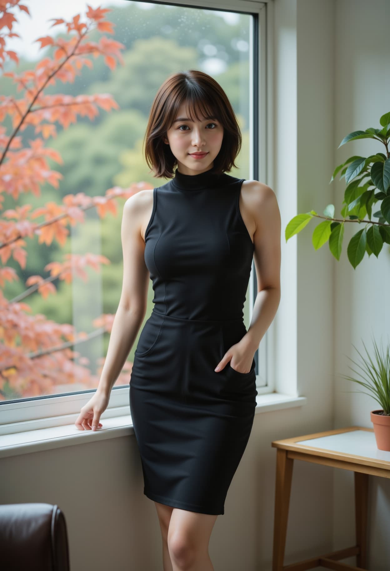 紅葉とドレス
