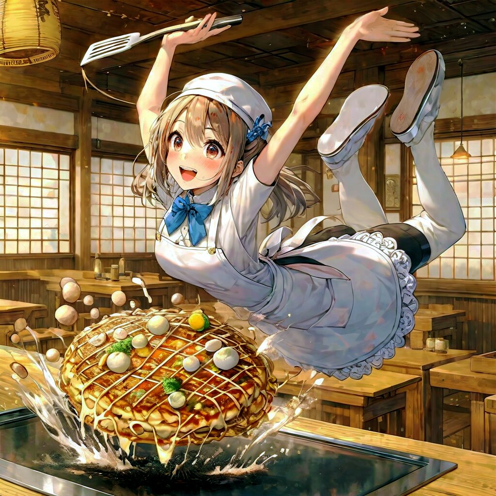 お好み焼きをひっくり返すなら、私もひっくり返る! (ウェイトレスの少女33)