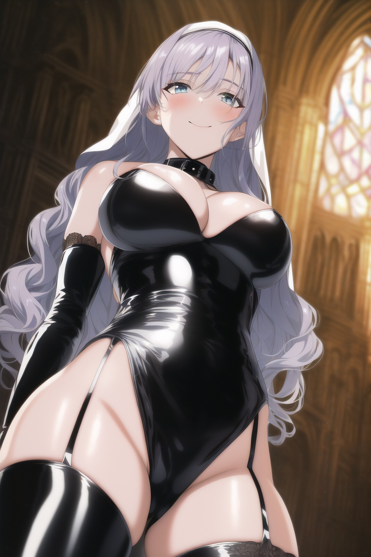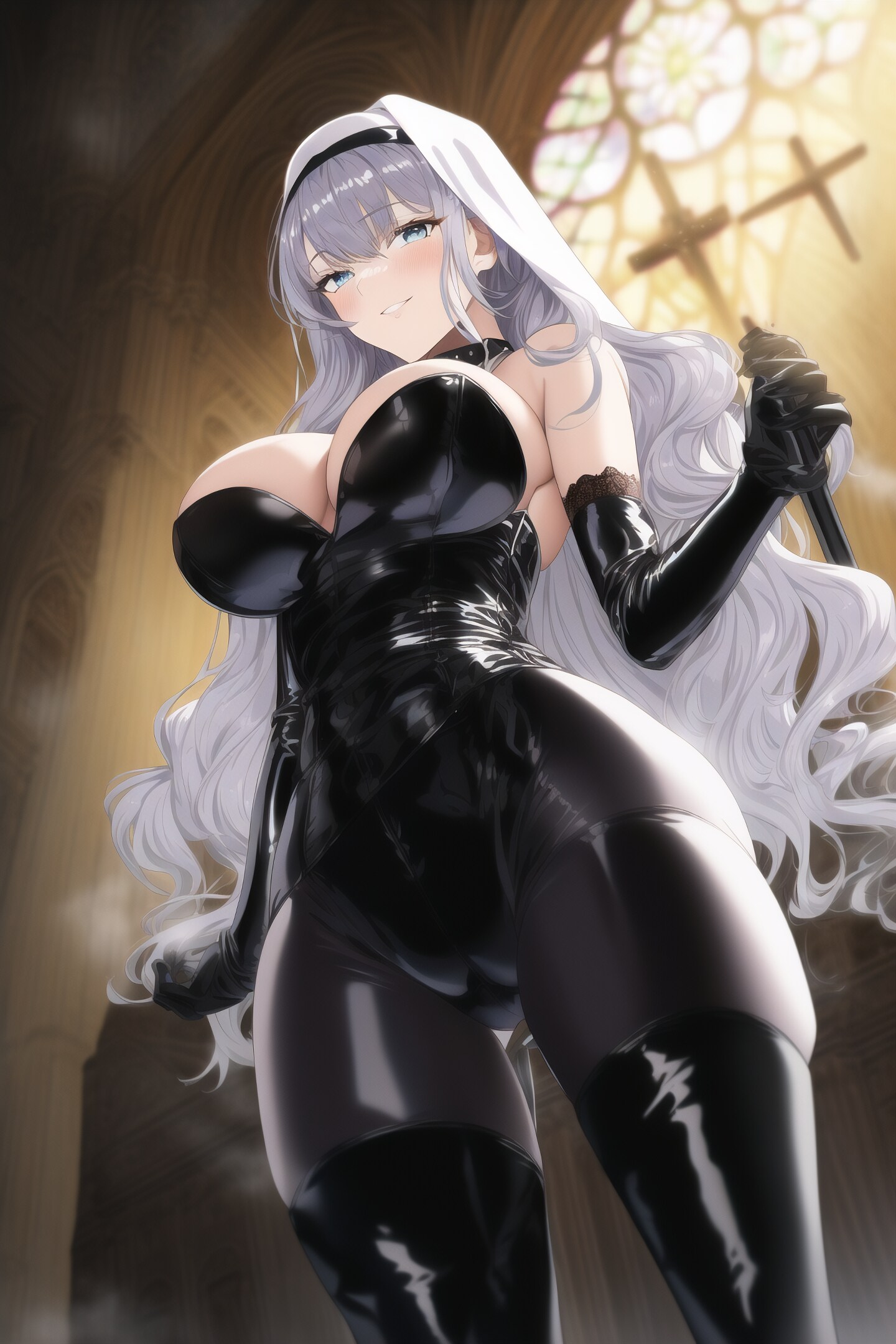 銀髪ロングボンデージシスター様ローアングル NAI_Smea試作