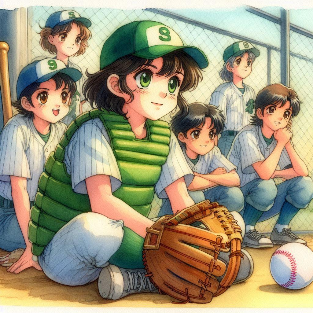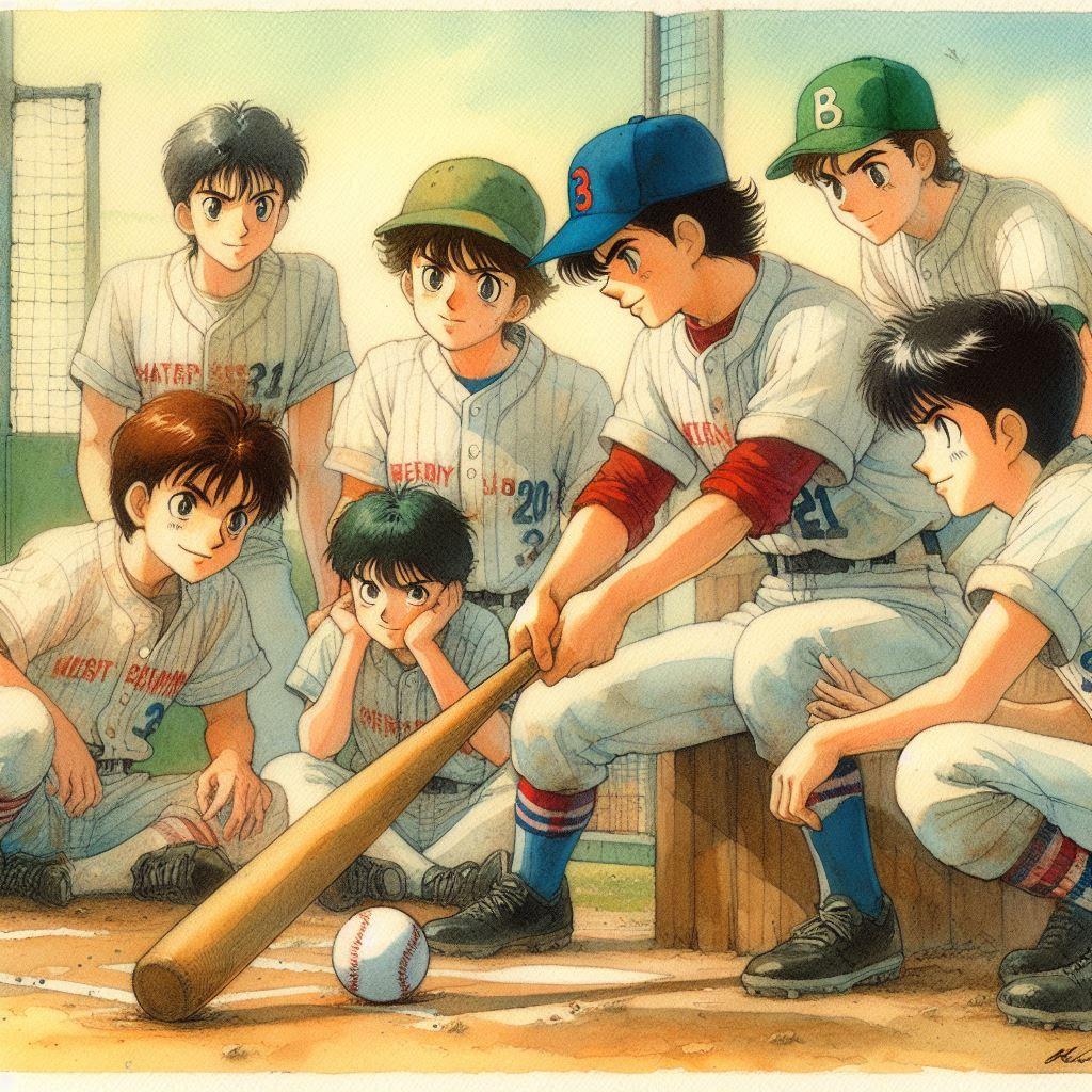元ネタ 1980年代末 野球の試合を行っている アニメ水彩画