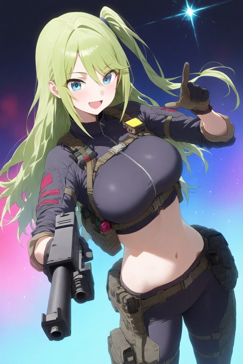 FPSというかサバゲー的にはこういう地味な服装(髪色と肌の色が悪目立ち……)が現実的にはいいのでしょうけど。