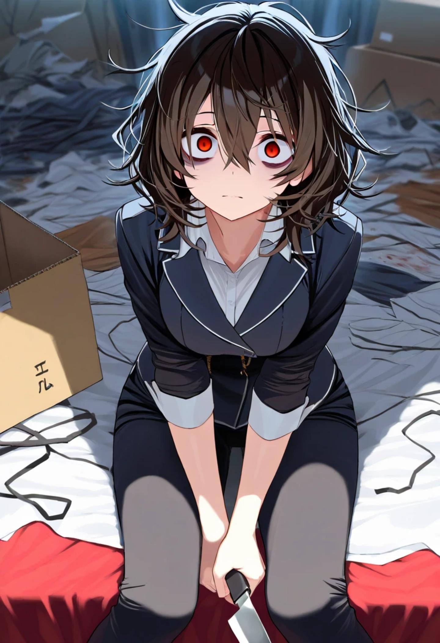 ナイフをもって汚ならしい部屋の中で
