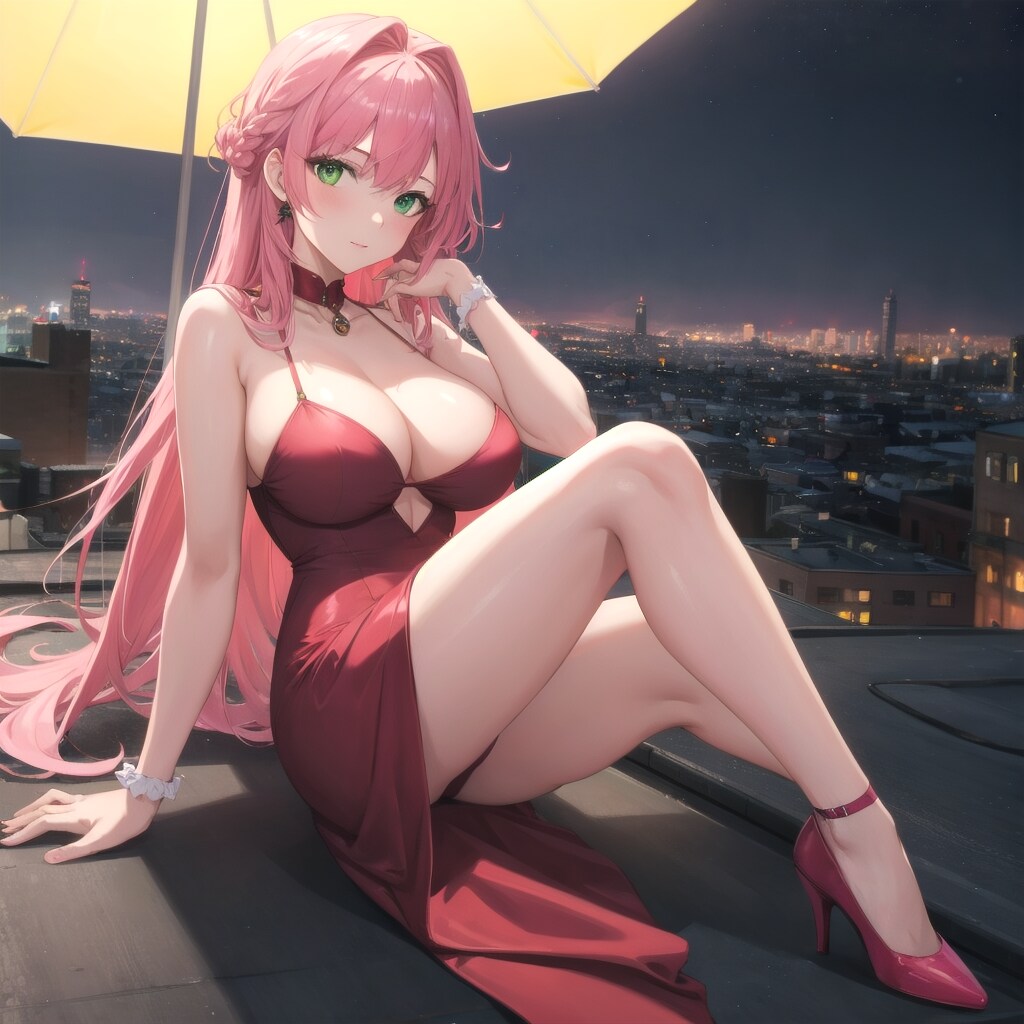 ◆青髪ボブ子ちゃんの姉(ピンク髪、緑色の目、ロングヘア、20歳、大学生、グラマラス体型の女性、ファッションモデル)が、「グラビア撮影」をしました。