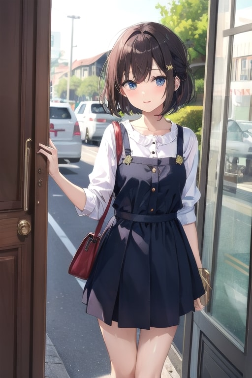 肩出し美少女が屋外で(〃ω〃)コ、コンニチハ