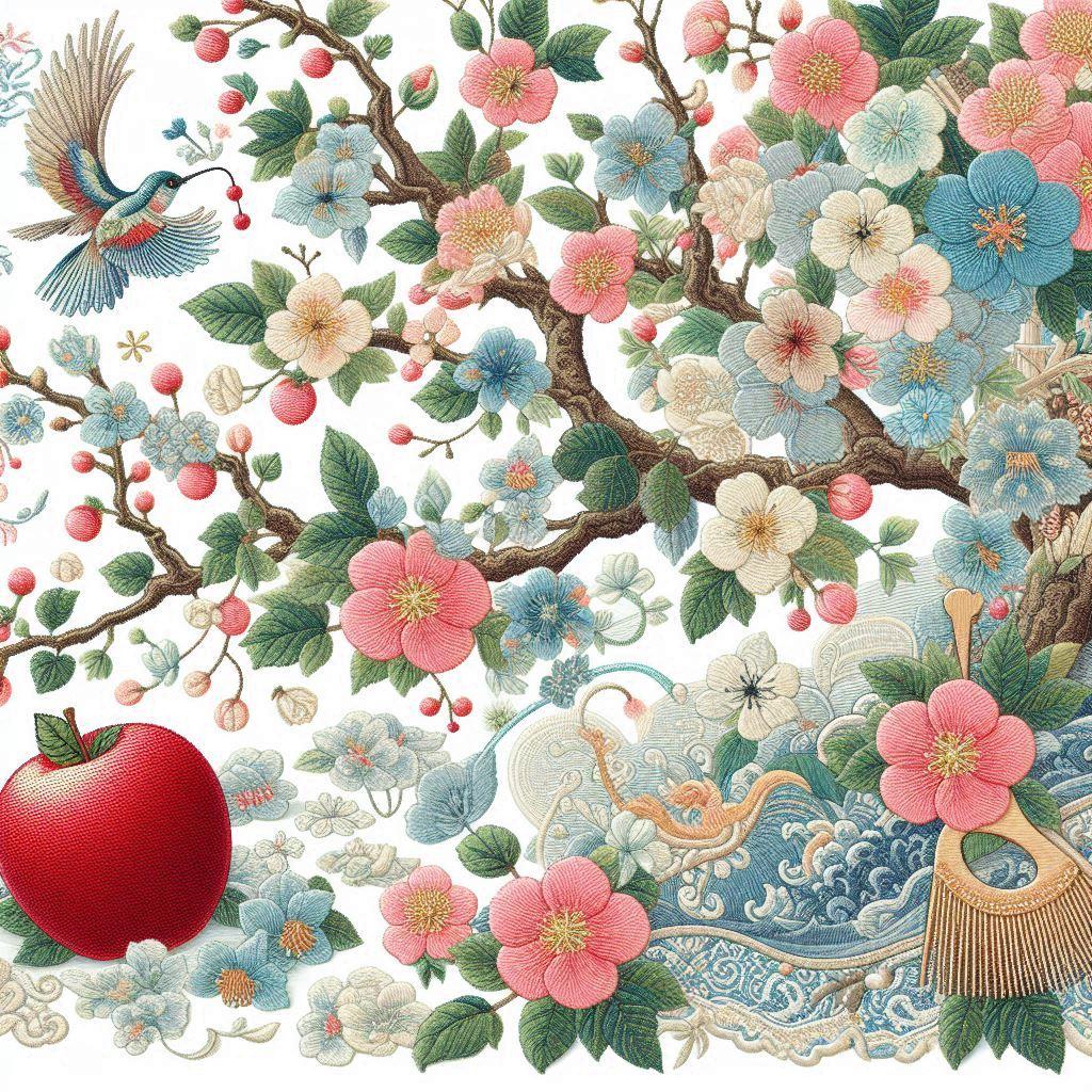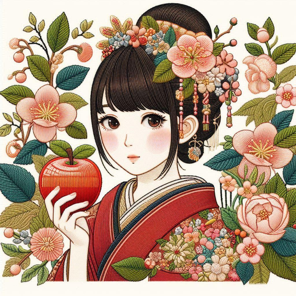 ただ、プロンプトの先頭に「和風、刺繍のような絵」とだけ追加させていただきました。