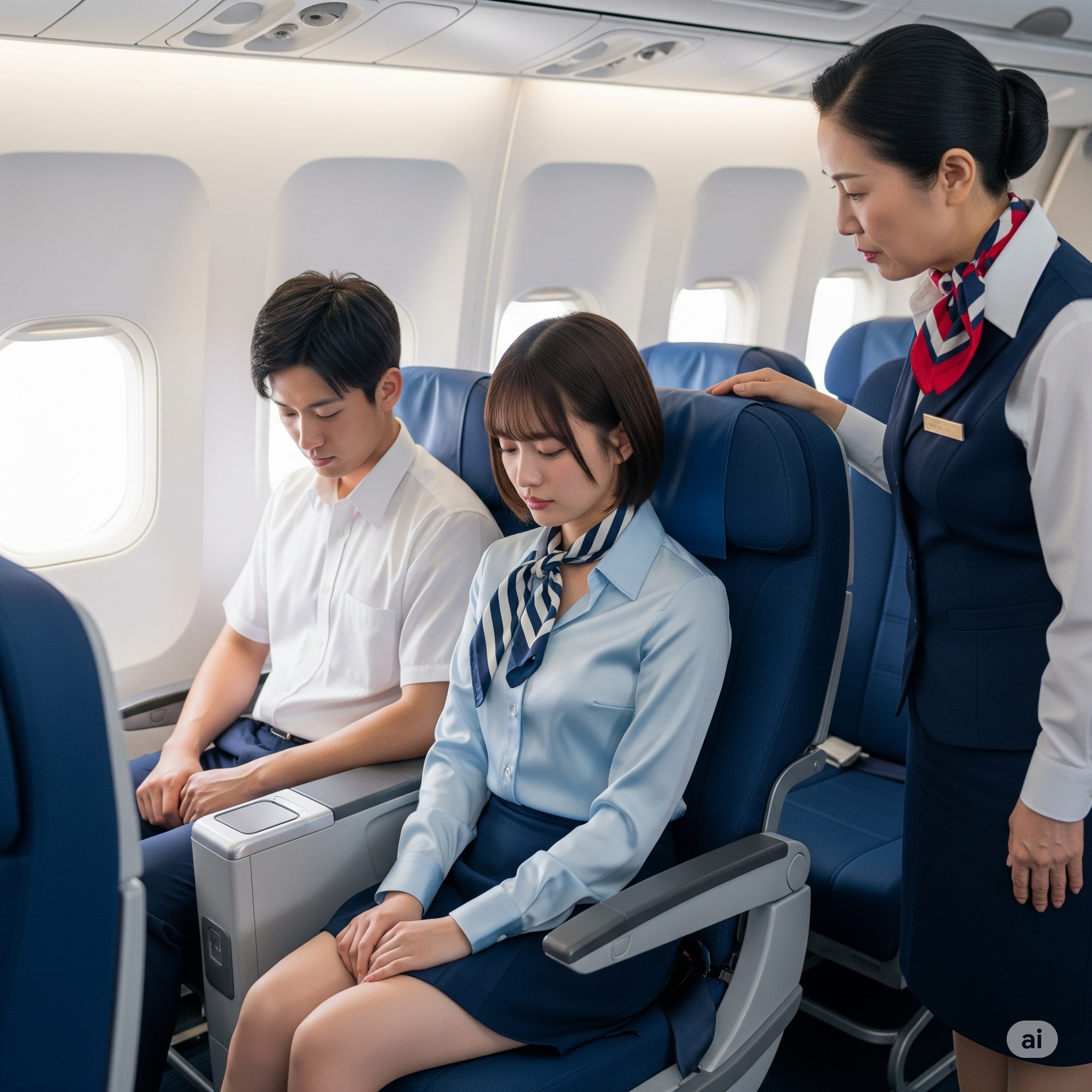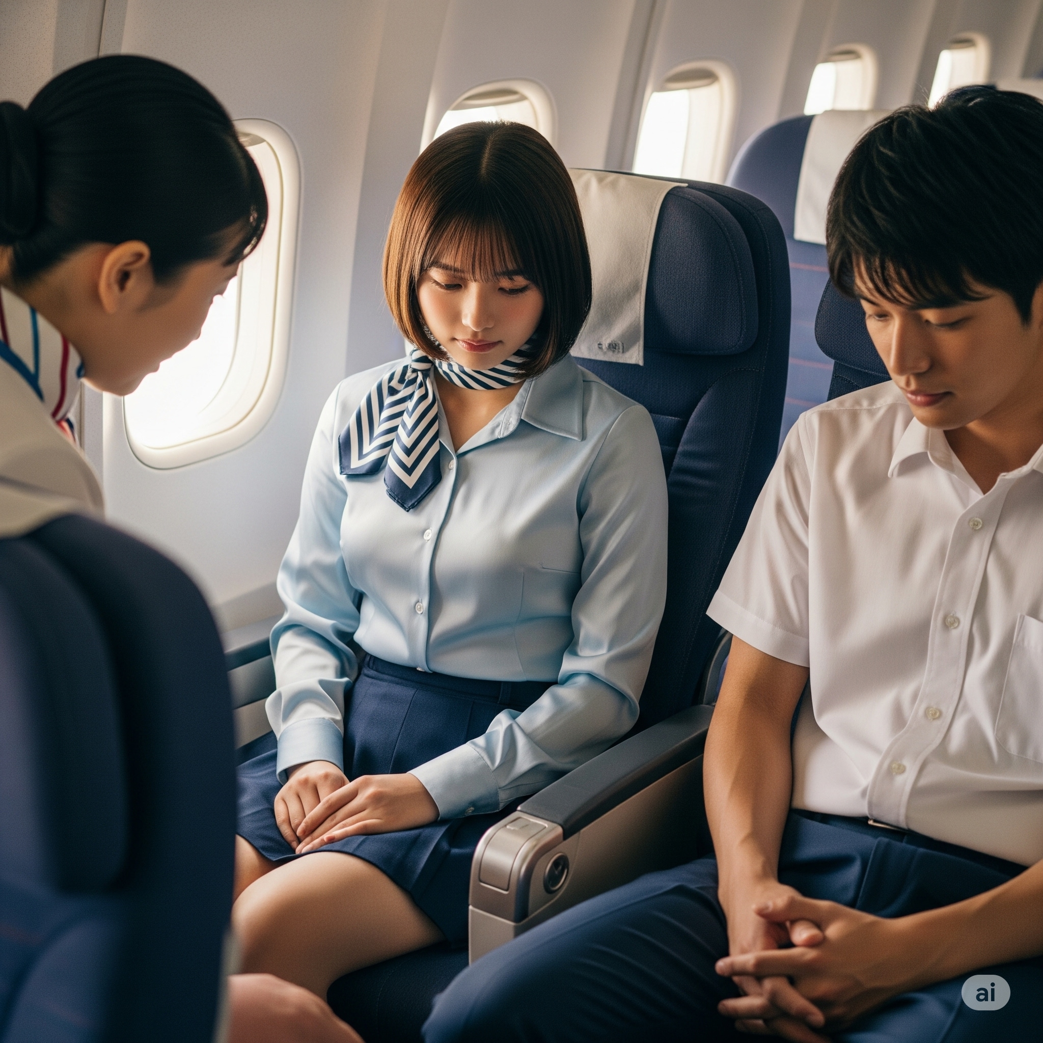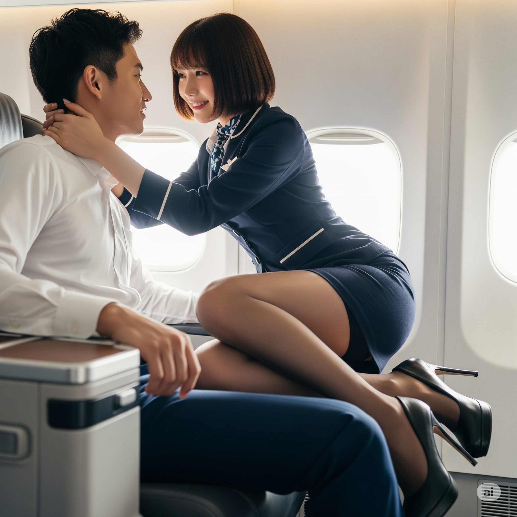 「あなた機内で何をやっているの。それでもCAなの。ちゃんと仕事しなさいよ。あなたも客だからって何してもいいなんてことないのよ。若いからってお盛んなこと。まったくぅ。ぶつくさぶつくさ」と、怒られてみました。
