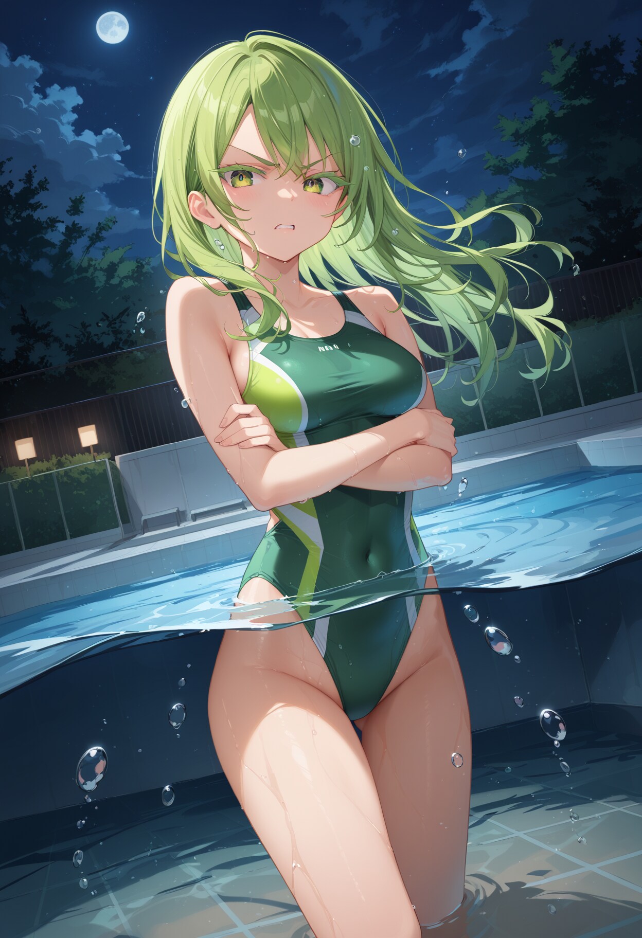 今日の健全プロンプト:partially underwater shot(キャラが腰まで水に浸かる)