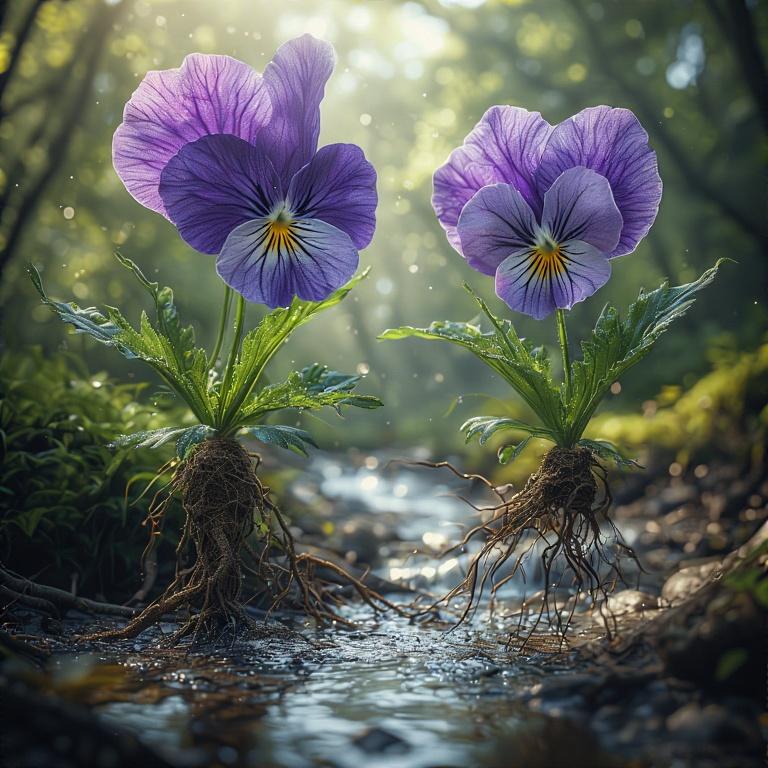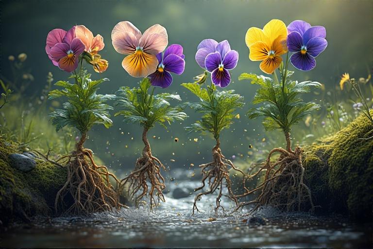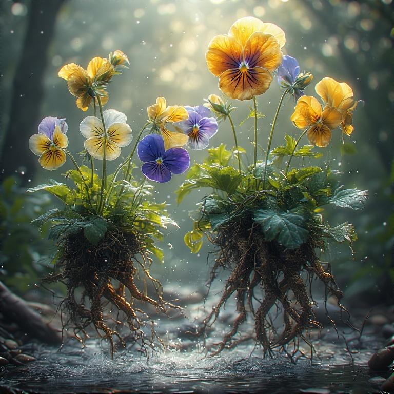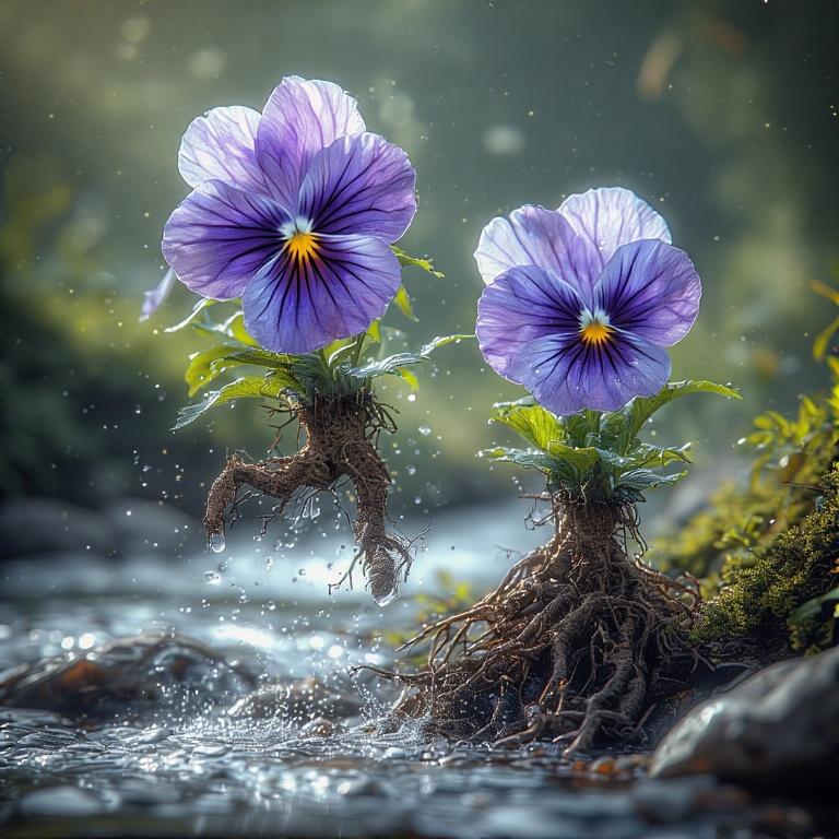 パンジーがジャンプして川を飛び越えている