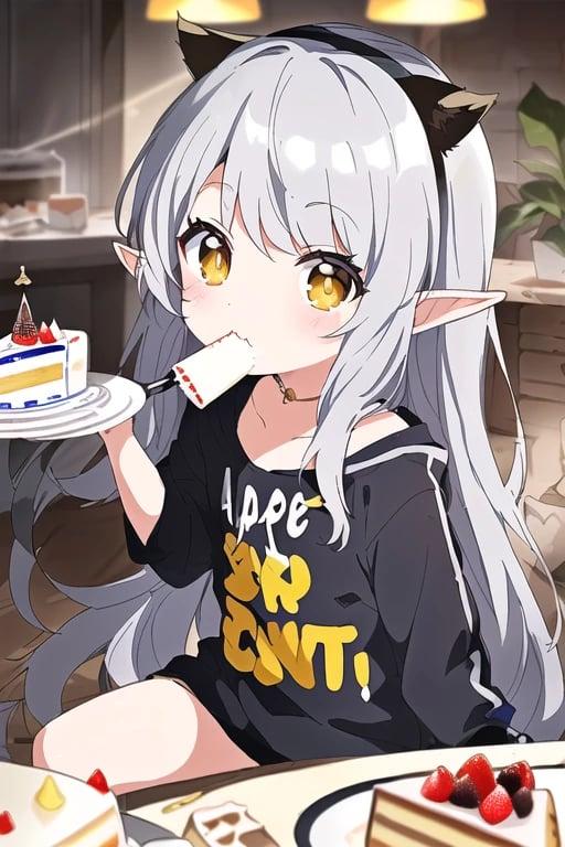 ケーキを食べるエルフ幼女