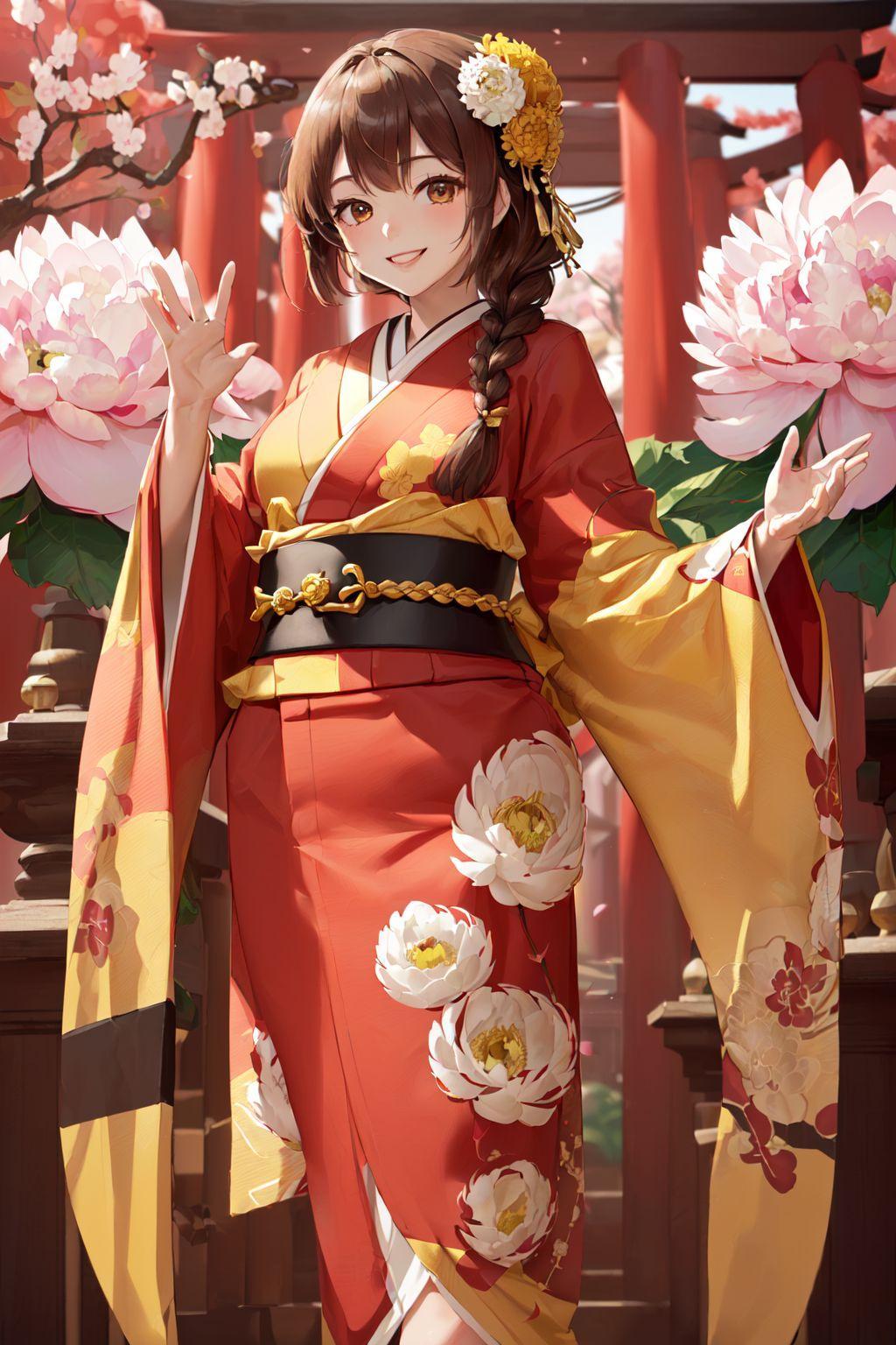 こちらは正統派な振り袖を着た美女となっております❗